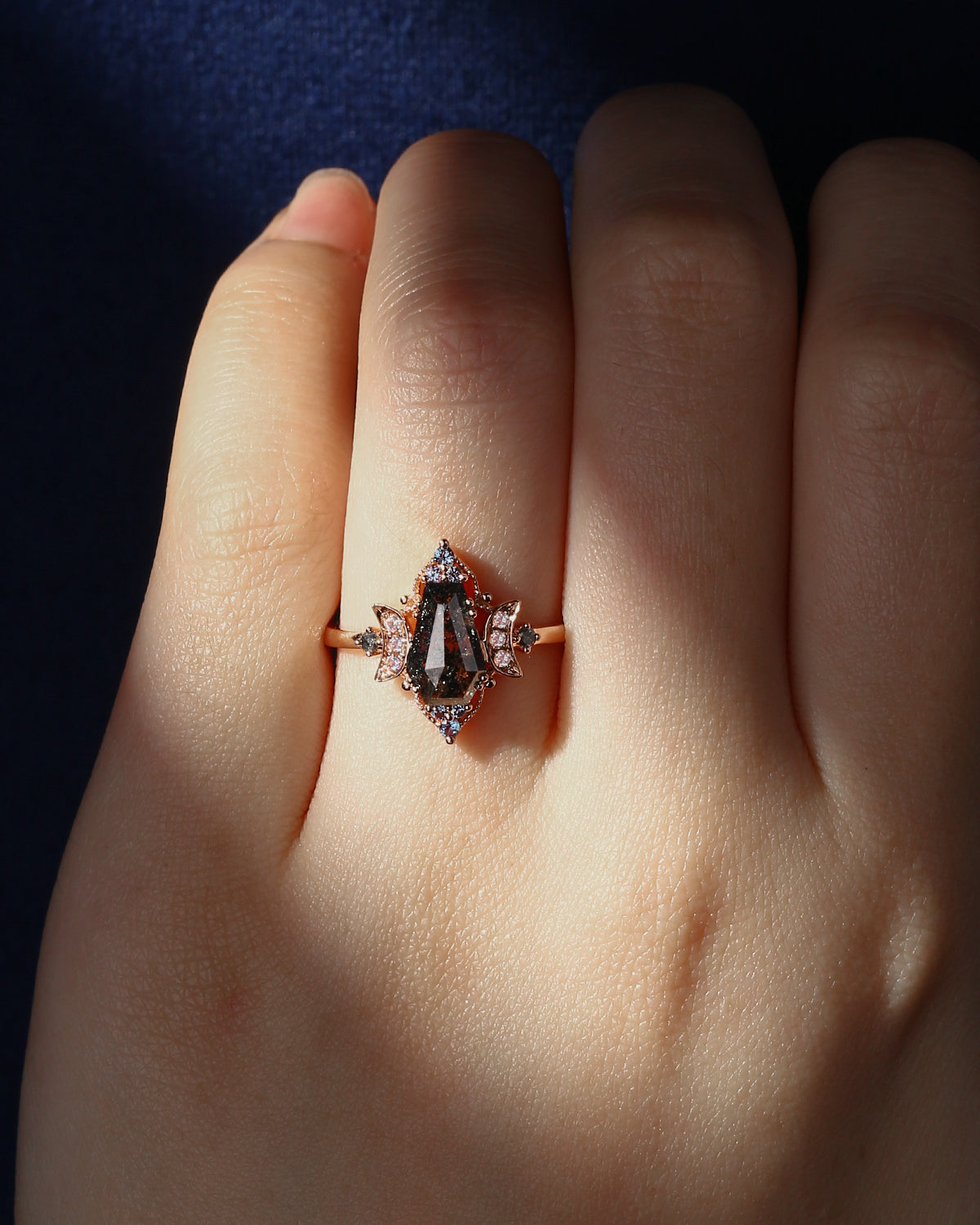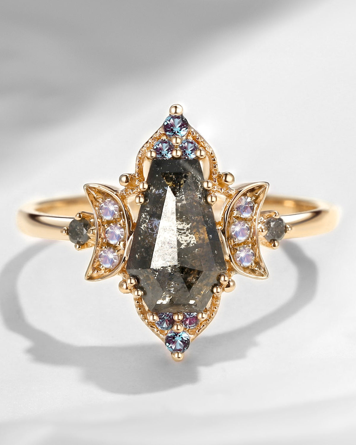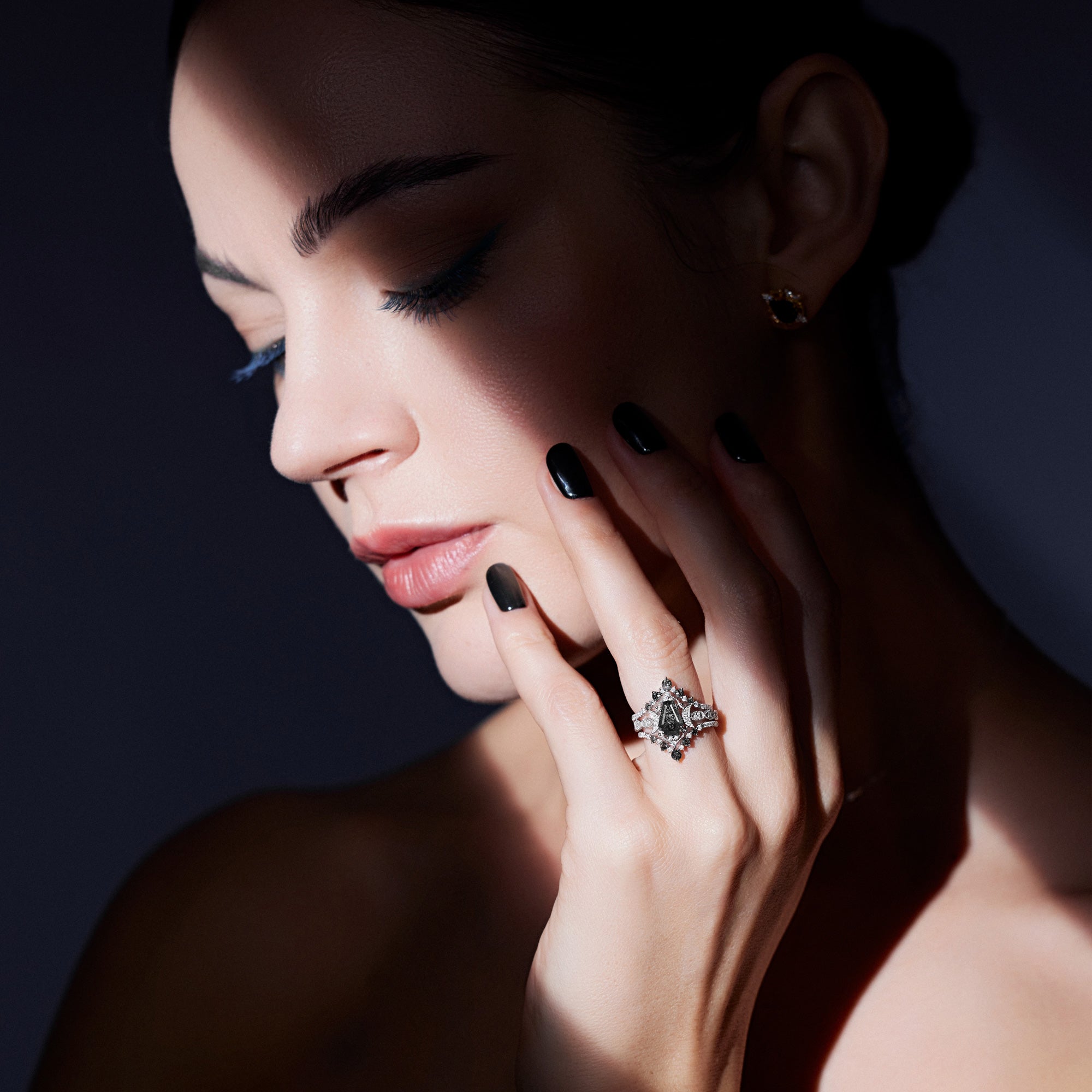 Kite Cut Natural Salt and Pepper Diamond Engagement Ring - Electra