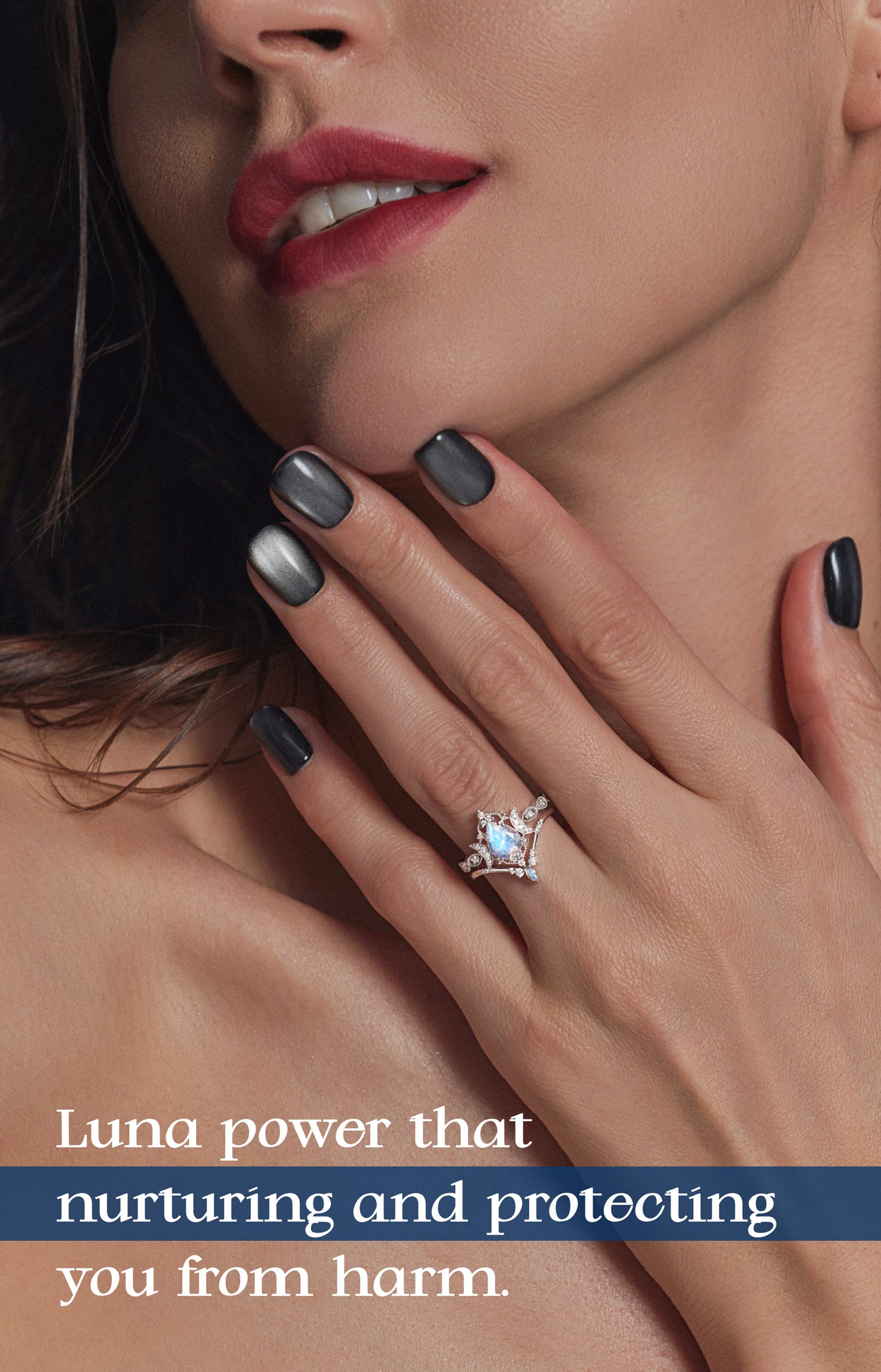 Crescent Moon | Unique Heart Shaped Moonstone Engagement Ring Moon Ring