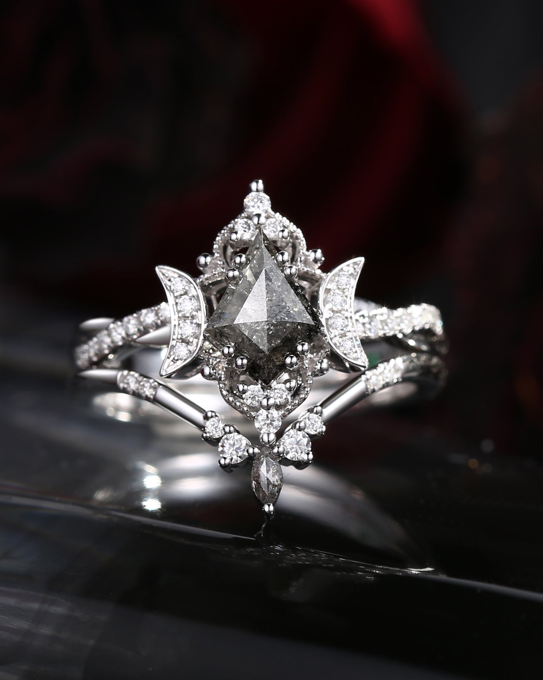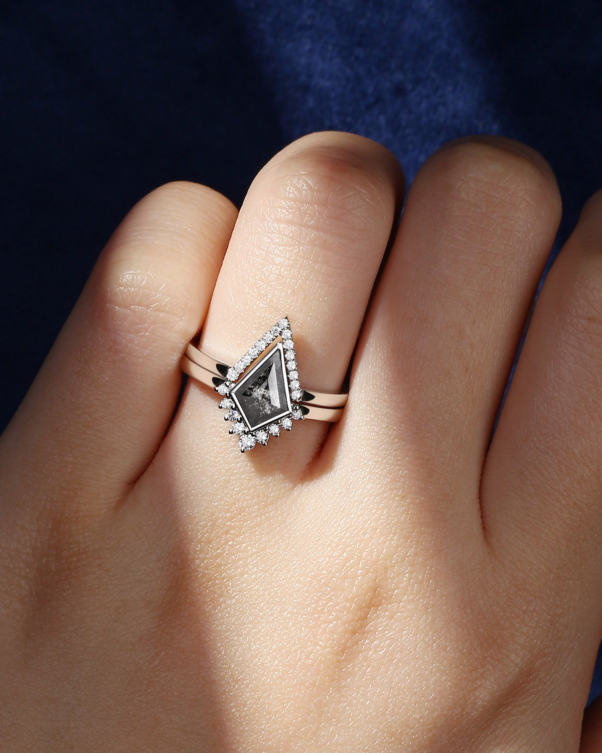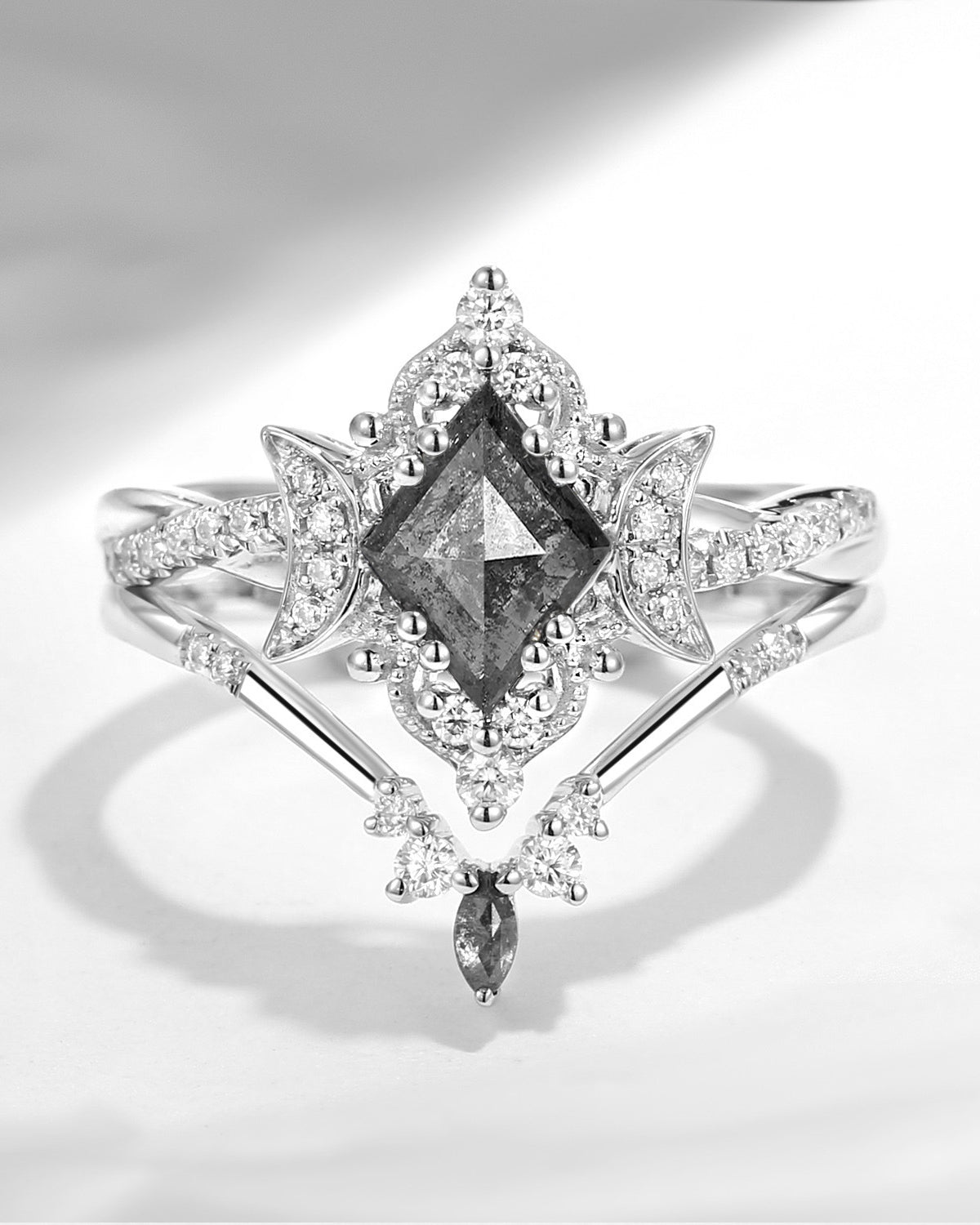Unique Kite Cut Salt And Pepper Engagement Ring 2pcs