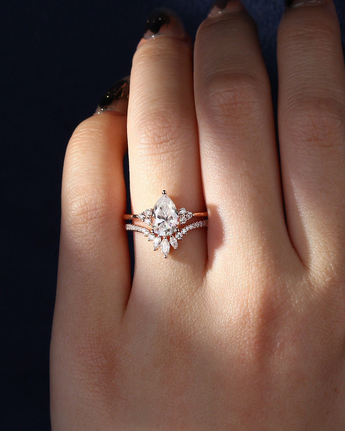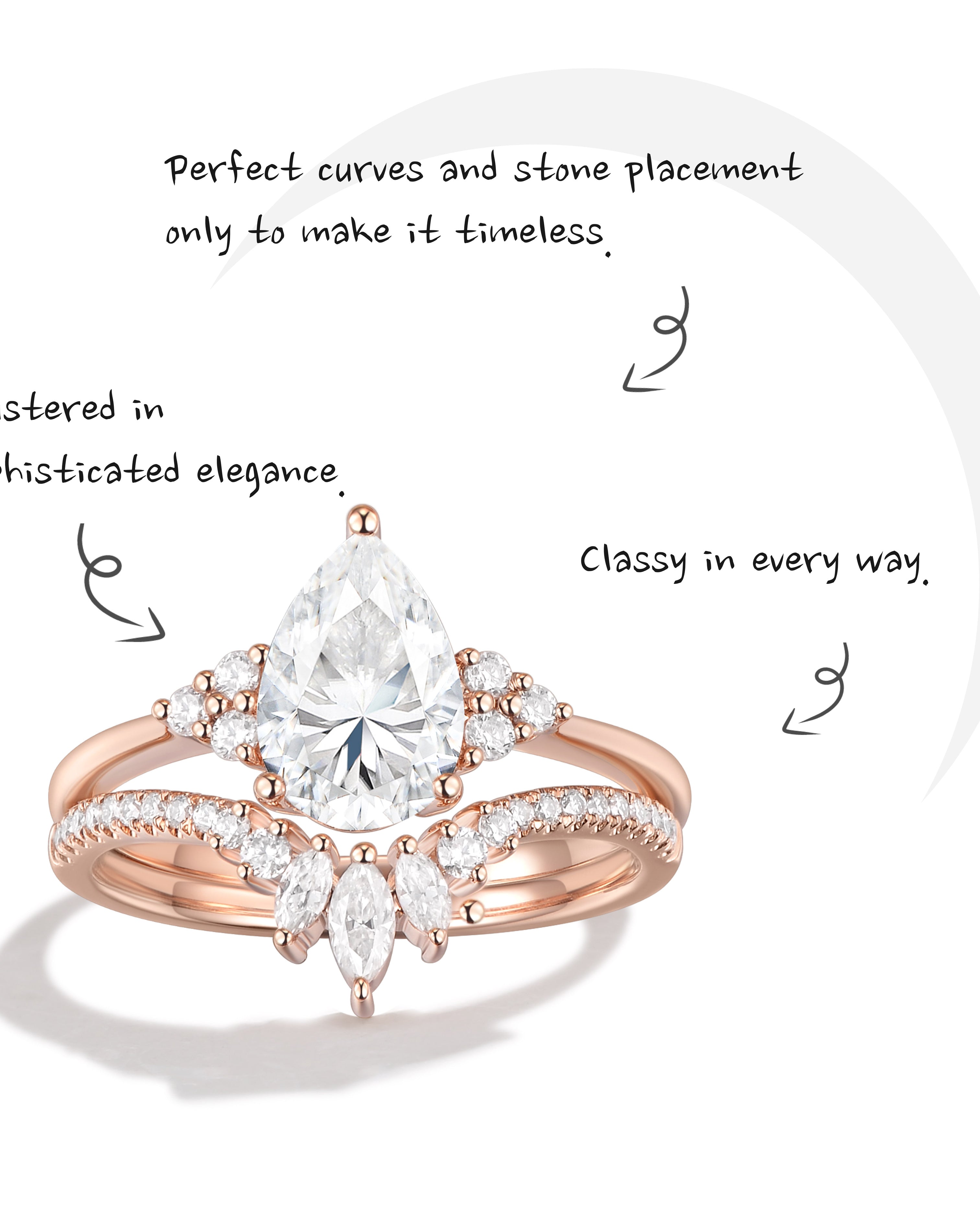 1.5ct Pear Shaped Classic Cluster Moissanite Engagement Ring Set 2pcs - Vivian