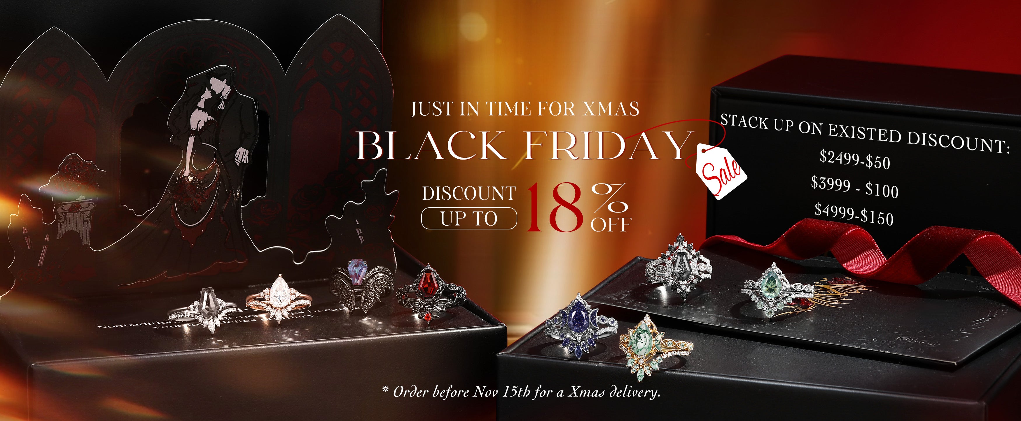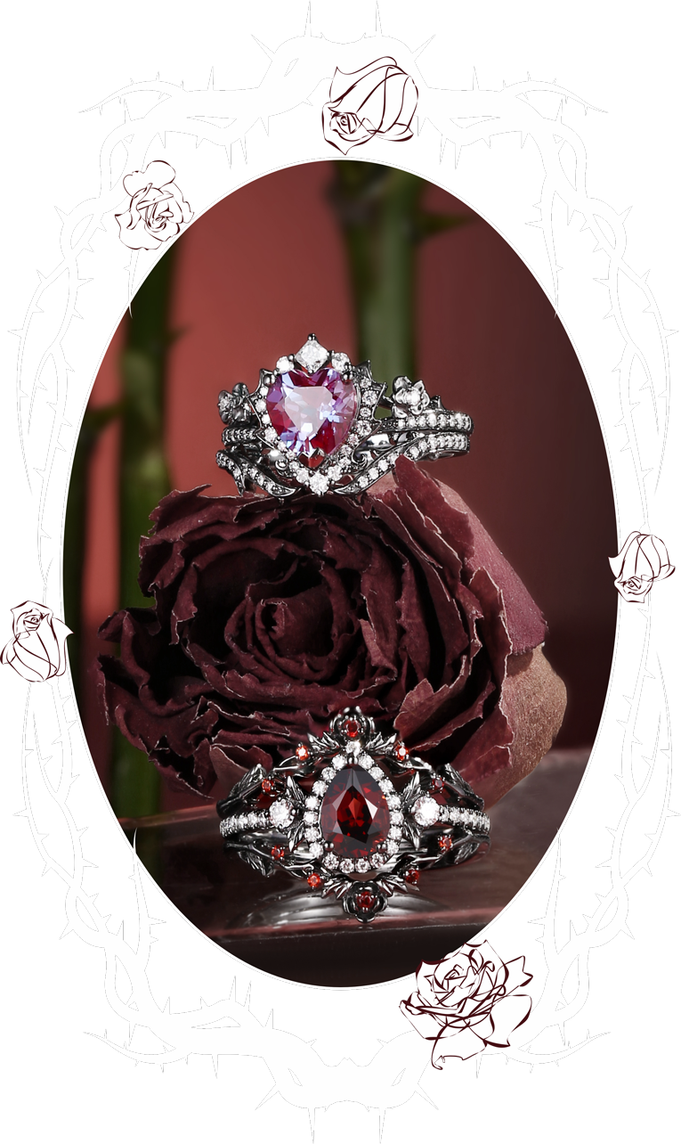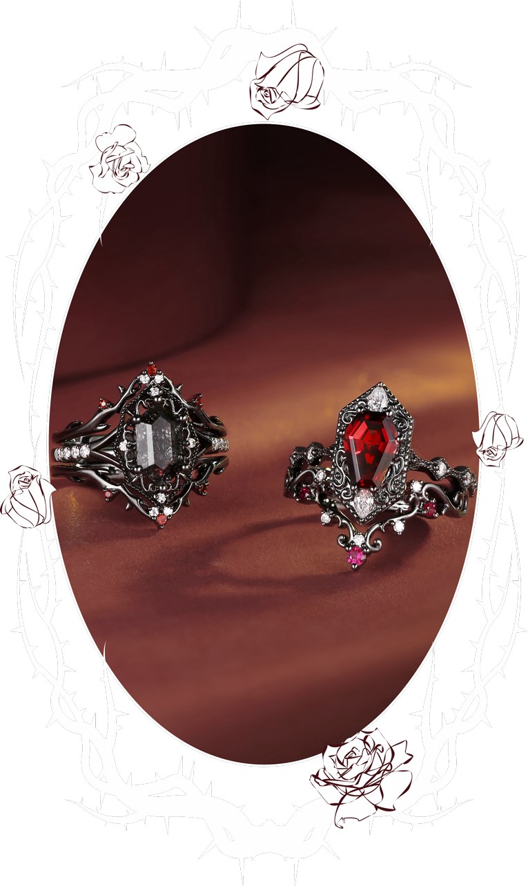 Unique Coffin Garnet Black Gold Engagement Star Ring Set 2pcs - Coffin Kite