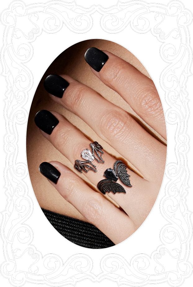 Coffin Cut Lab Black Opal Vintage Black Gold Bridal Set 2pcs - Bat Ring
