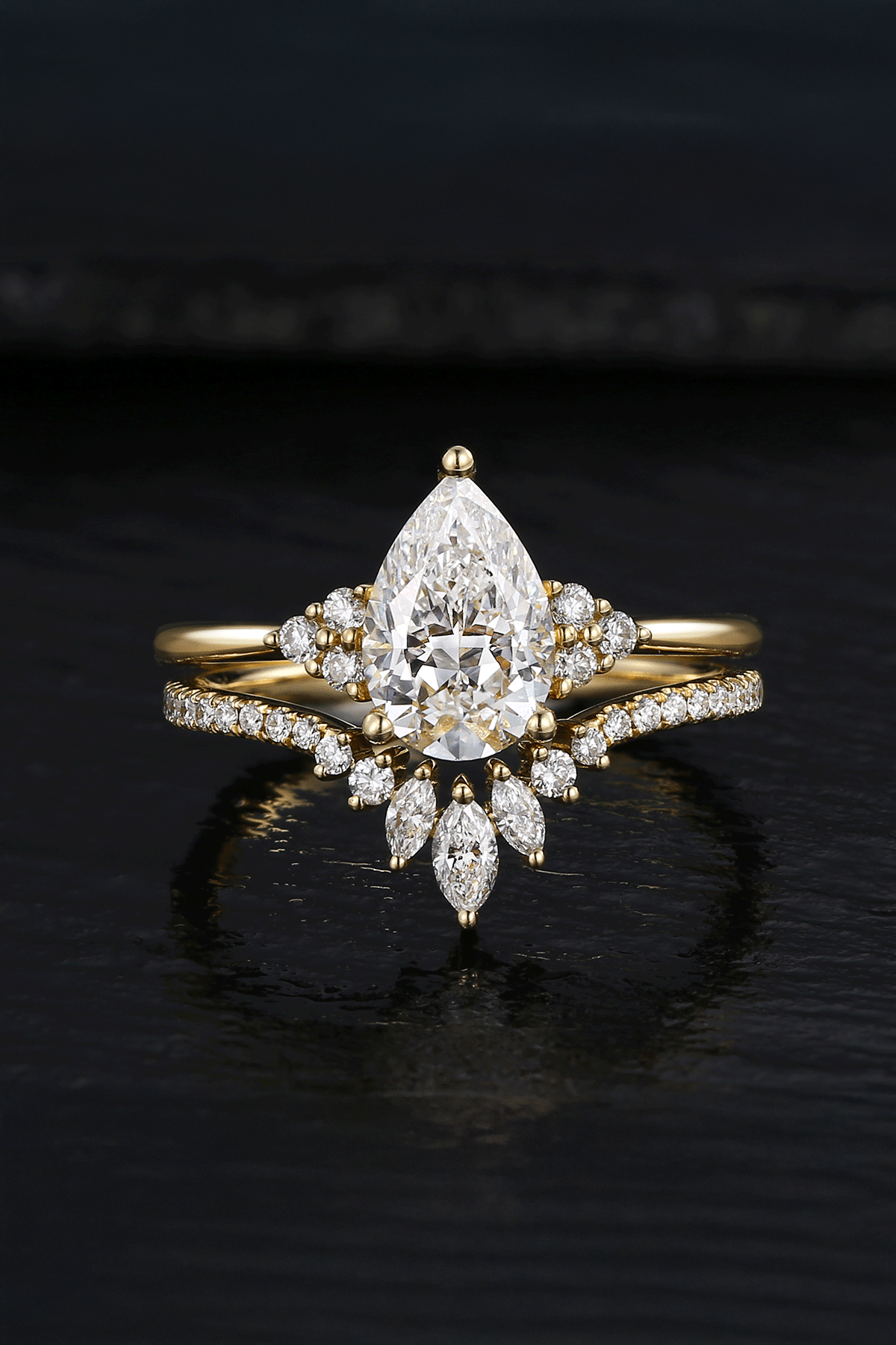 1.5ct Pear Shaped Classic Cluster Moissanite Engagement Ring Set 2pcs - Vivian