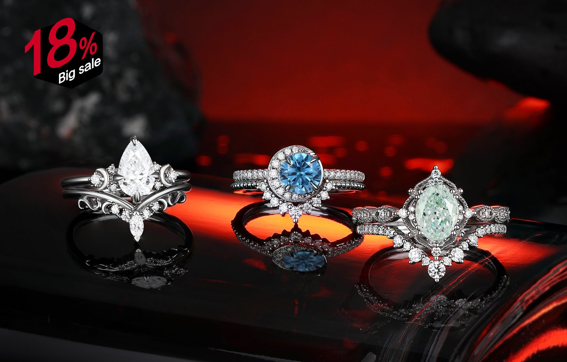 Crescent Moon | Unique Pear Lab Diamond Engagement Ring Set 2pcs