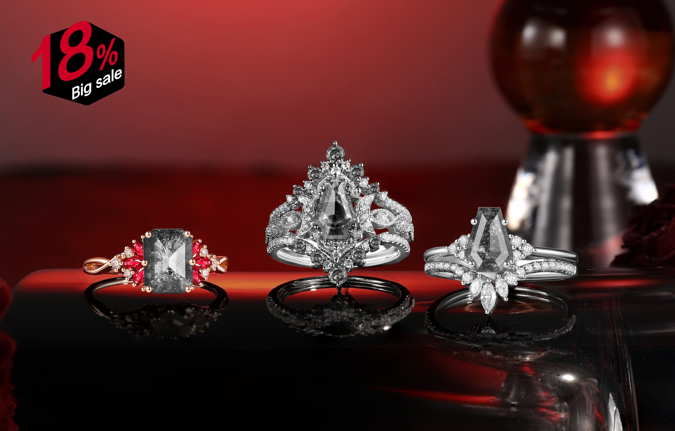 Crescent Moon | Coffin Garnet Engagement Ring 3pcs 18k - Till Death Do Us Part