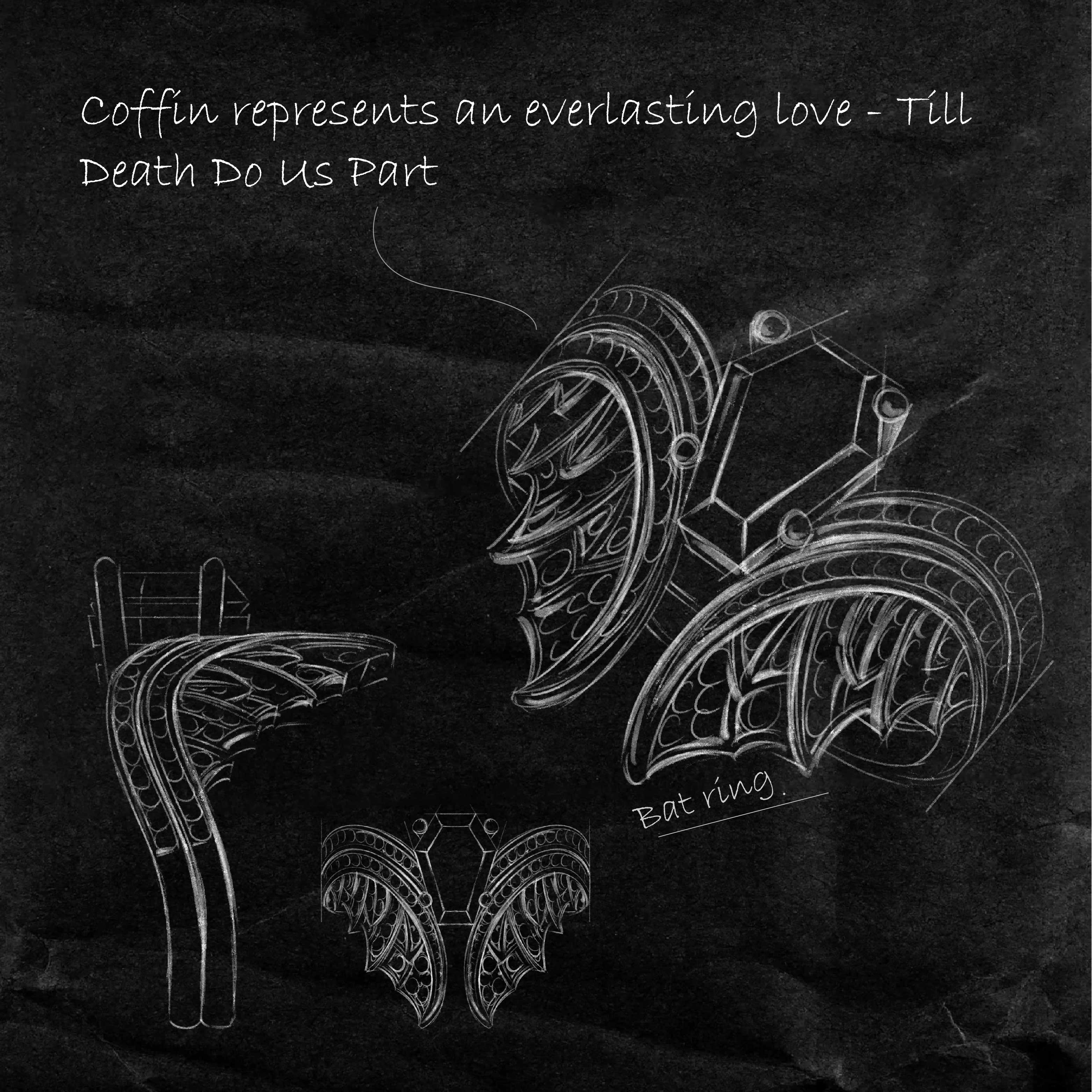 On Christmas Eve, in the side courtyard of a century-old church, stone walls draped with withered vines. You escape the festive crowds and stand beneath a pillar untouched by moonlight. Gently holding her hand in black lace gloves, you whisper, “You are the starlight in my darkness,” as a distant hymn faintly echoes. Then you reveal a piece from our Bat Ring collection, its prongs like wings cradling a gemstone like solidified midnight.