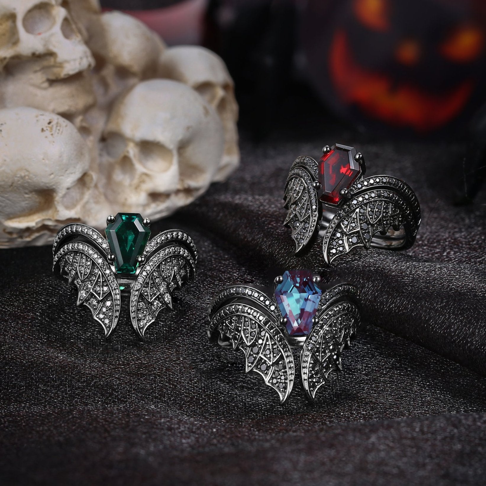 The black gold bat design, with red garnet, is so unique and eye-catching!! The bat ring adds the perfect gothic touch—exactly what I wanted. Shoutout to Jimmy for the amazing customer service—he was super helpful and made sure I got the perfect set. Highly recommend!