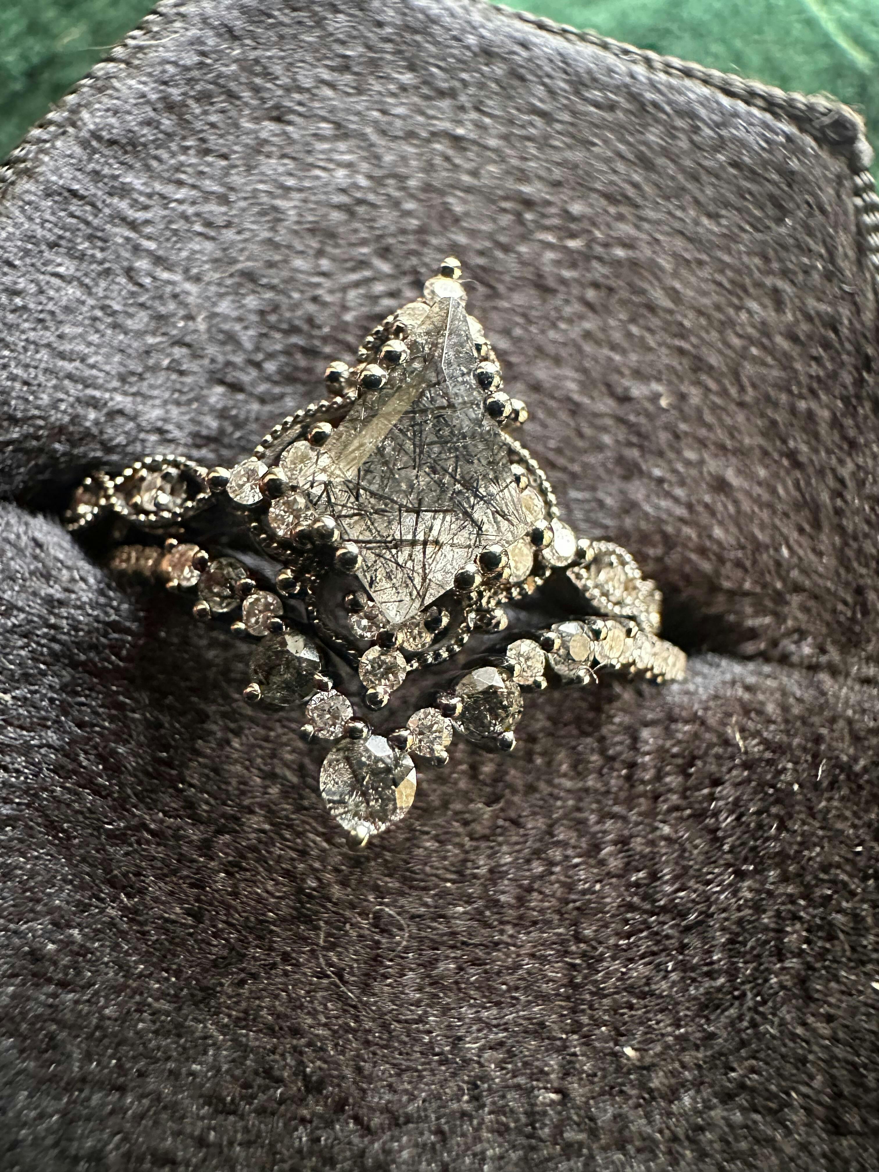 The ring is gorgeous! It also came in a beautiful coffin box. Of course, she said YES! 🖤 My custom ring is also a perfect fit!
