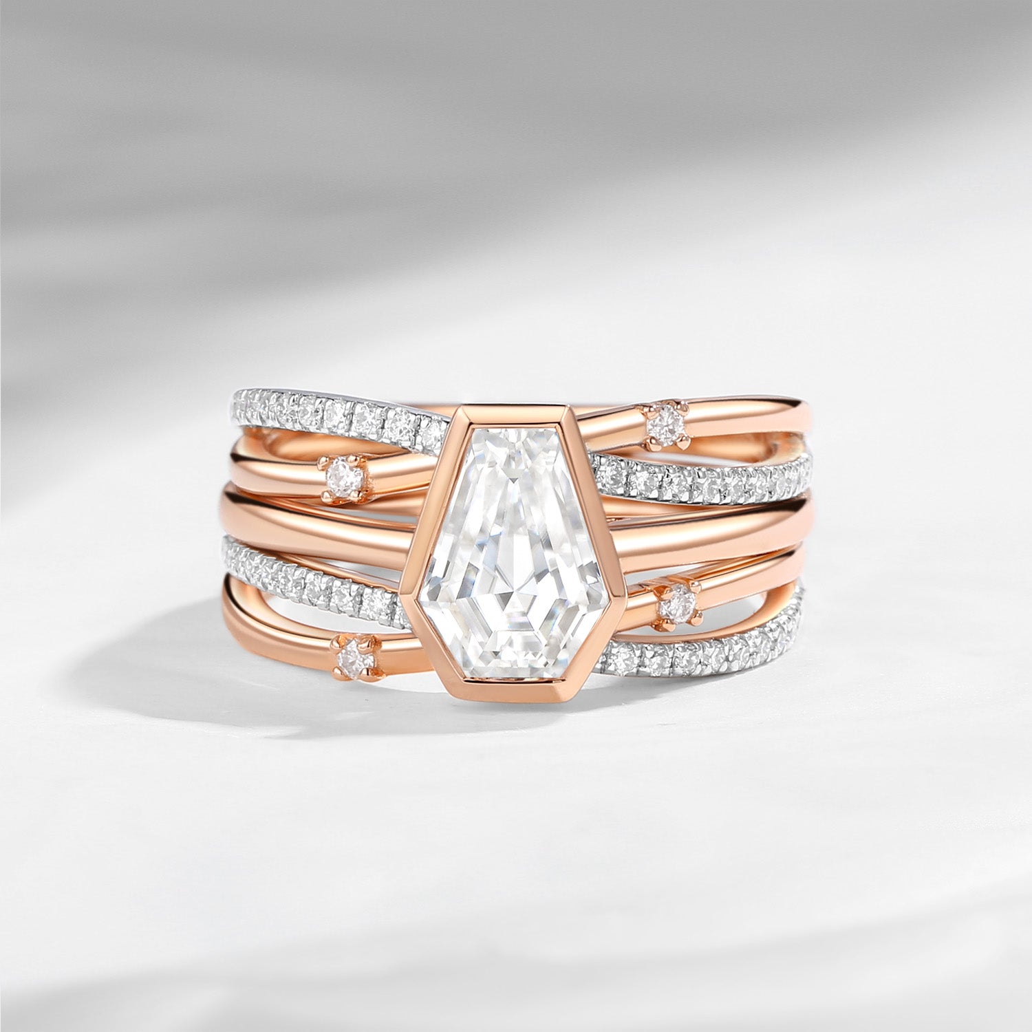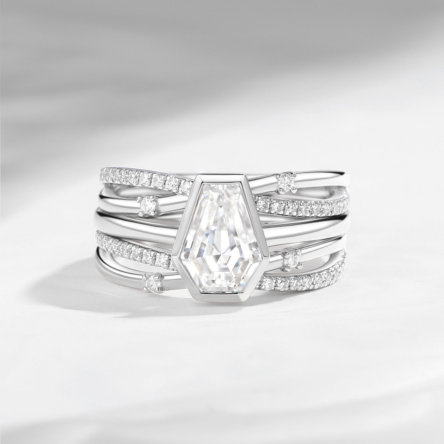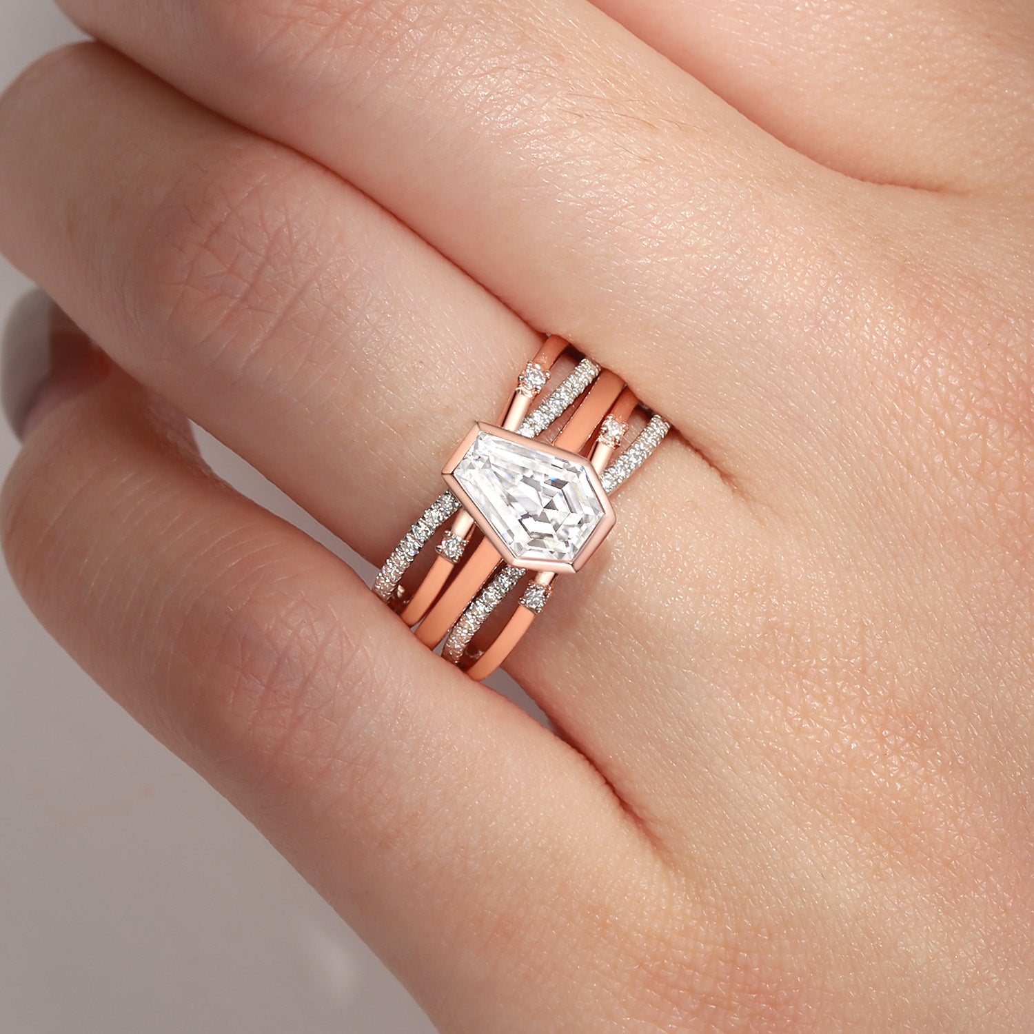 Half Eternity Coffin Moissanite Infinity Engagement Ring Set 3pcs