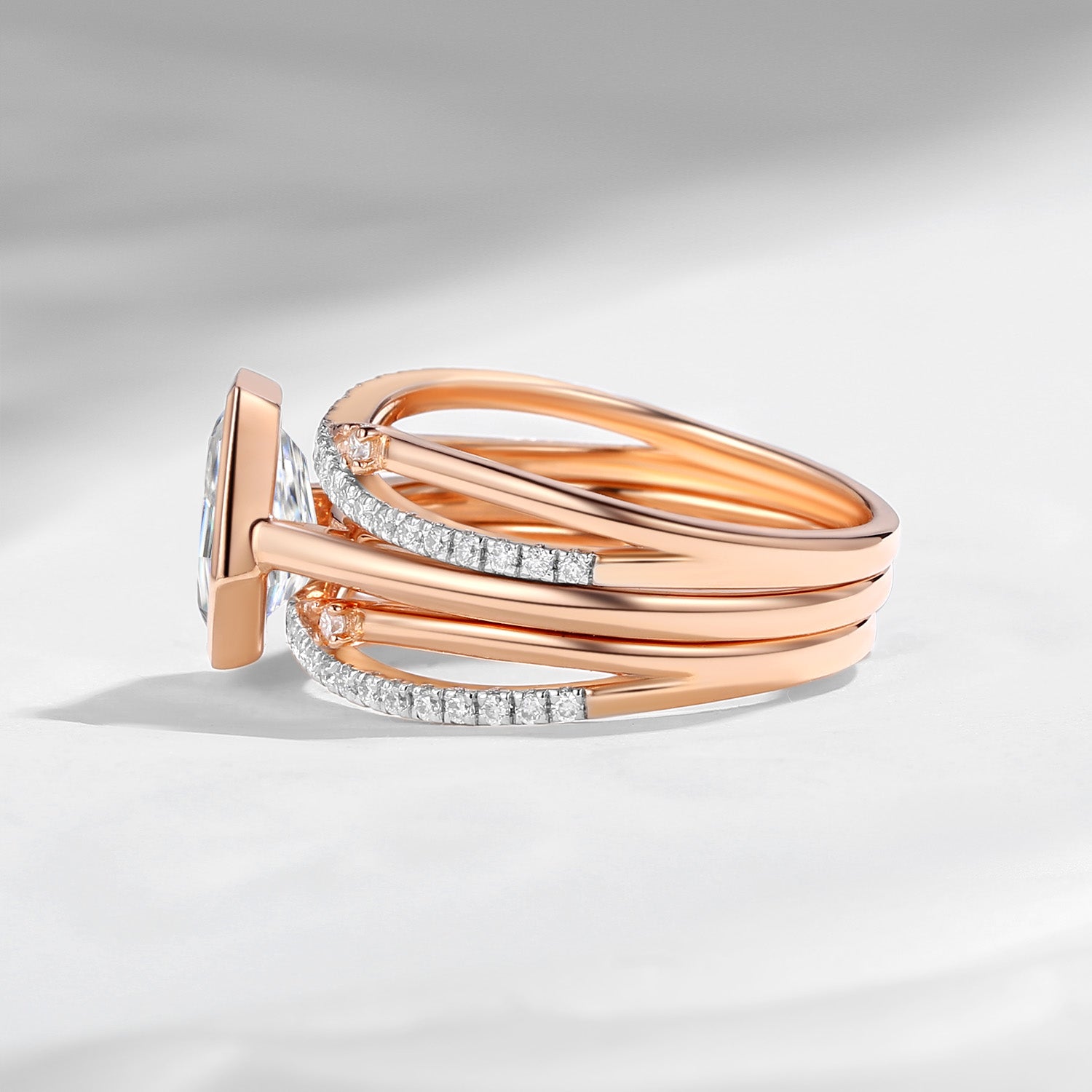 Vintage Inspired Pear shaped Moissanite Engagement Ring 3pcs
