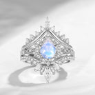 Antique Pear Cut Moonstone Engagement Ring Set 3pcs One Of Crescent Moon Bridal Sets