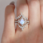 Crescent Moon | Antique Pear Cut Moonstone Engagement Ring Set 3pcs 18K