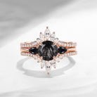 Black Rutilated Quartz Bridal Ring Set 3pcs Cluster Engagement Ring Set Marquise Wing Enhancer Antique Chevron Three Stones Pear Tear