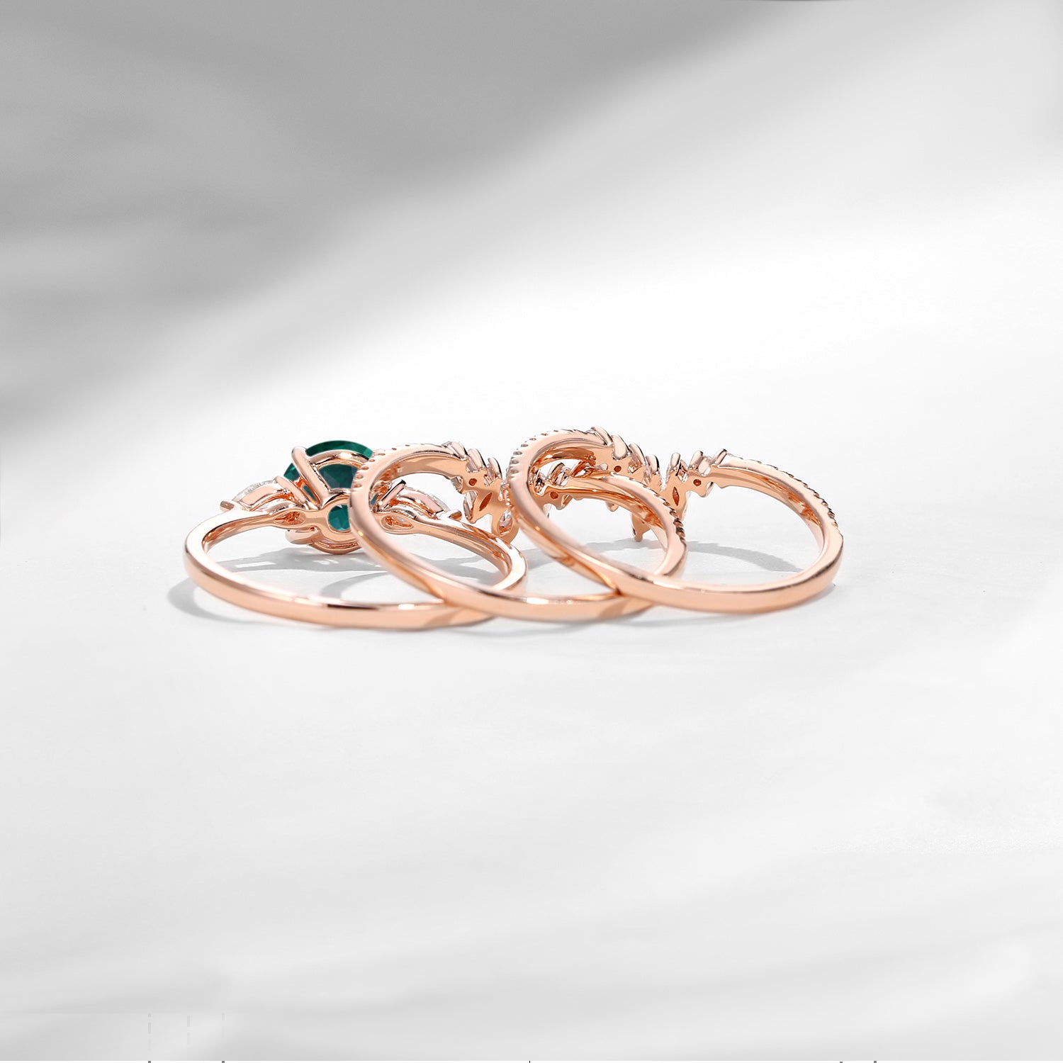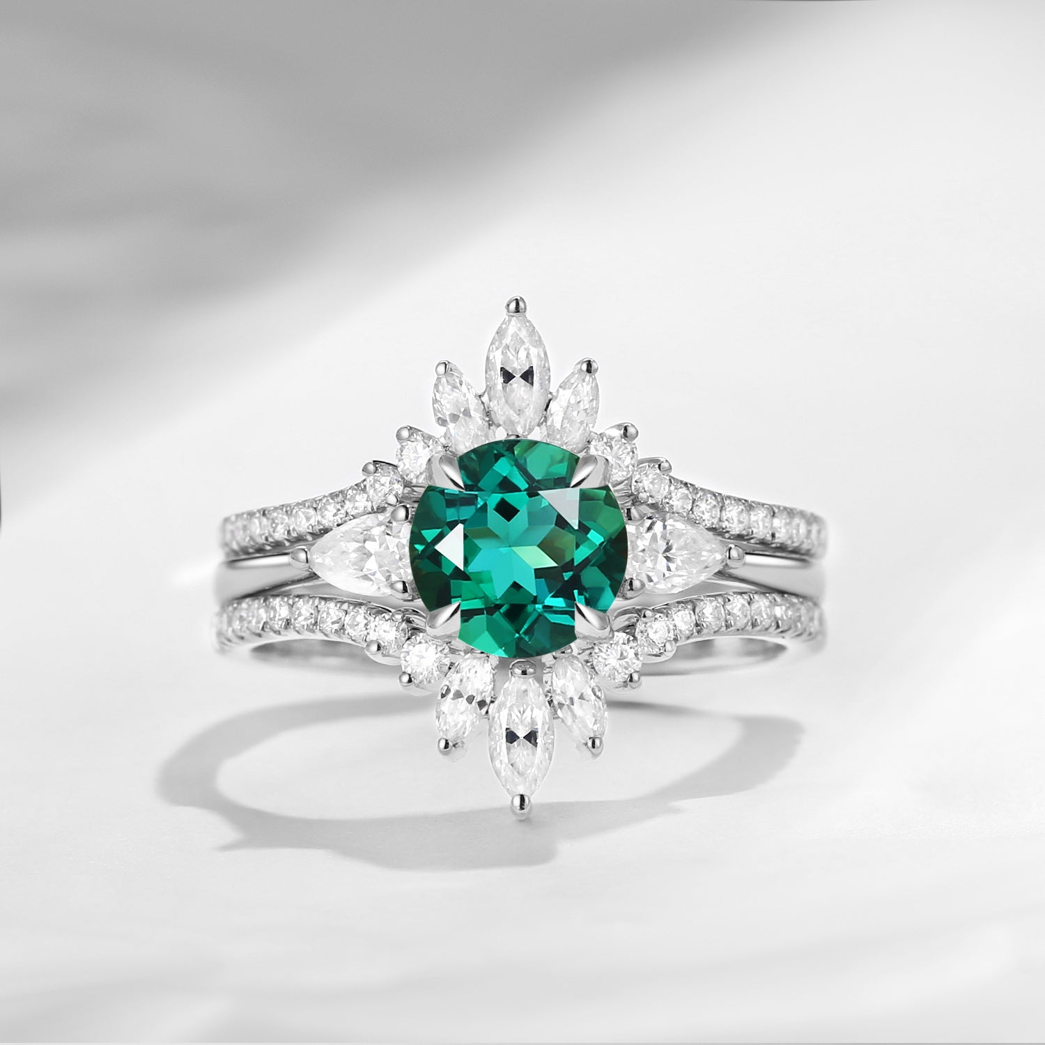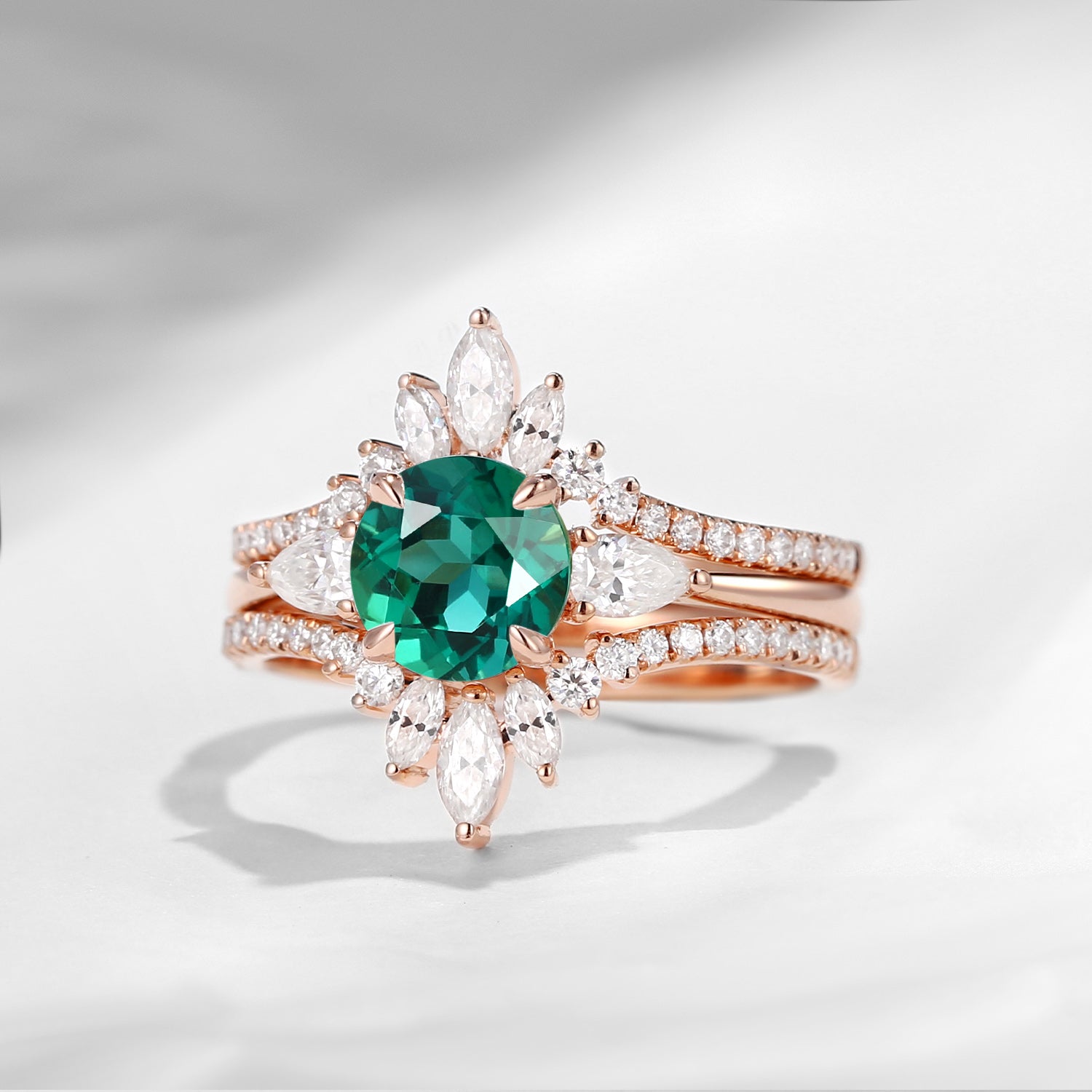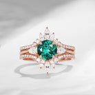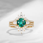 Bette‘s Eyes| Lab Emerald Cluster Bridal Ring Set 3pcs