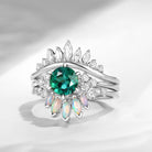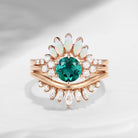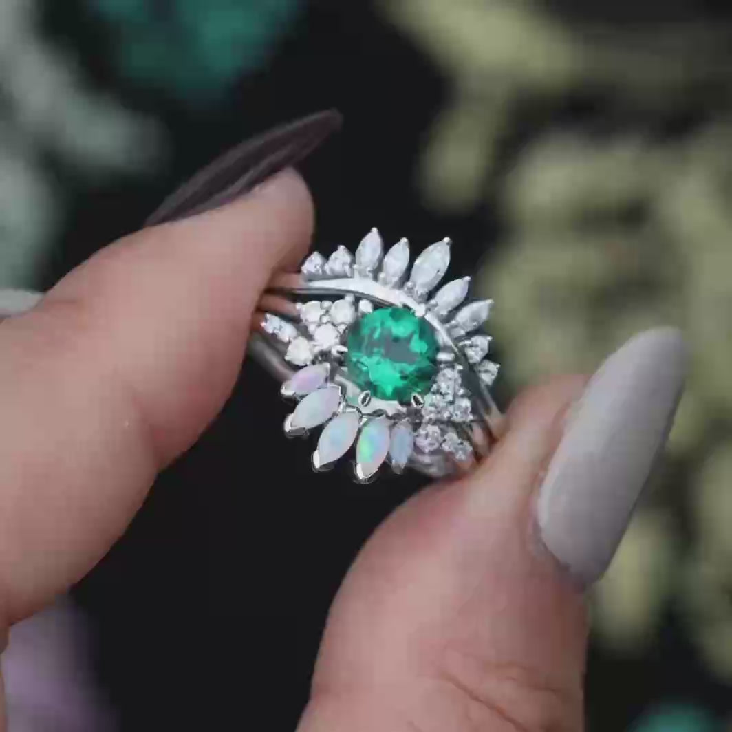 Lab Emerald Engagement Ring Set 3pcs Stacking Rose Gold Bridal Set Marquise Opal Cluster Engagement Ring Wedding Band Marquise Moissanite