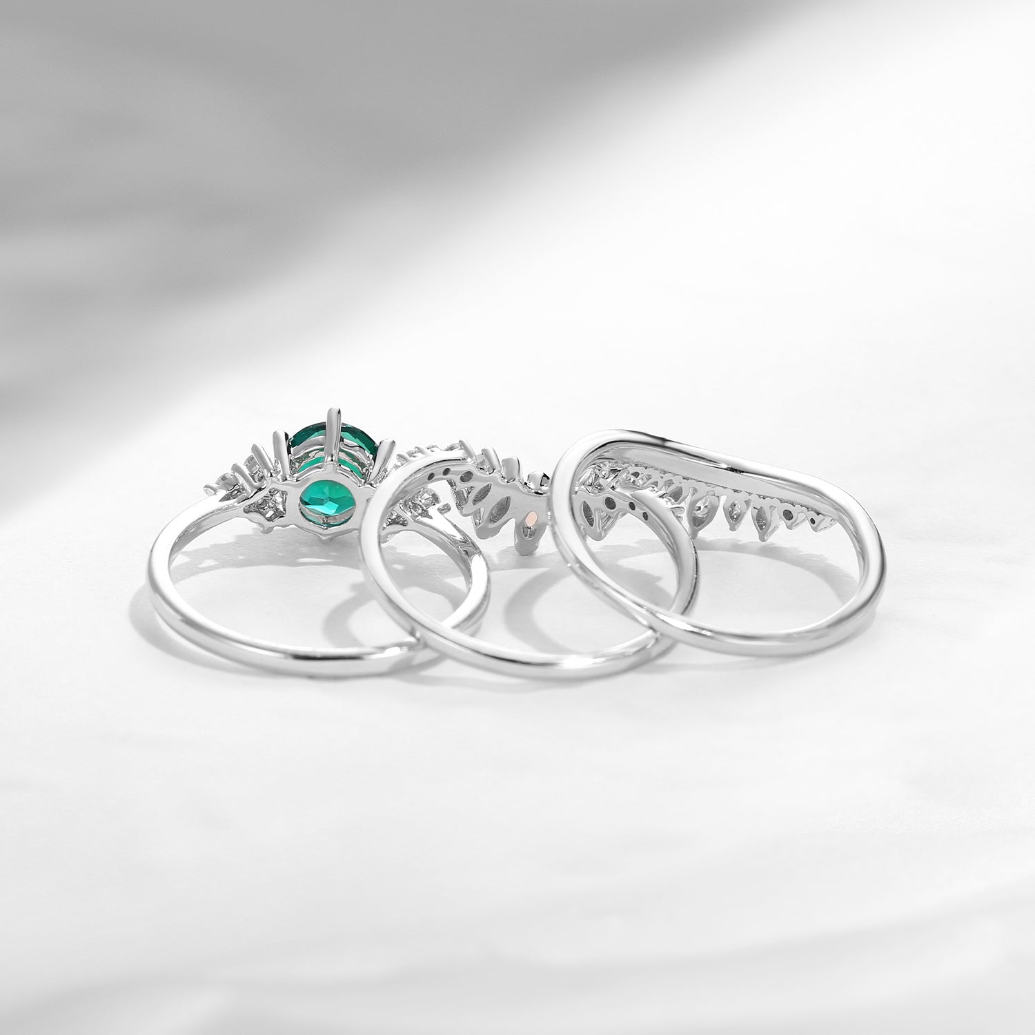 Bette‘s Eyes | Lab Emerald Engagement Ring Set 3pcs