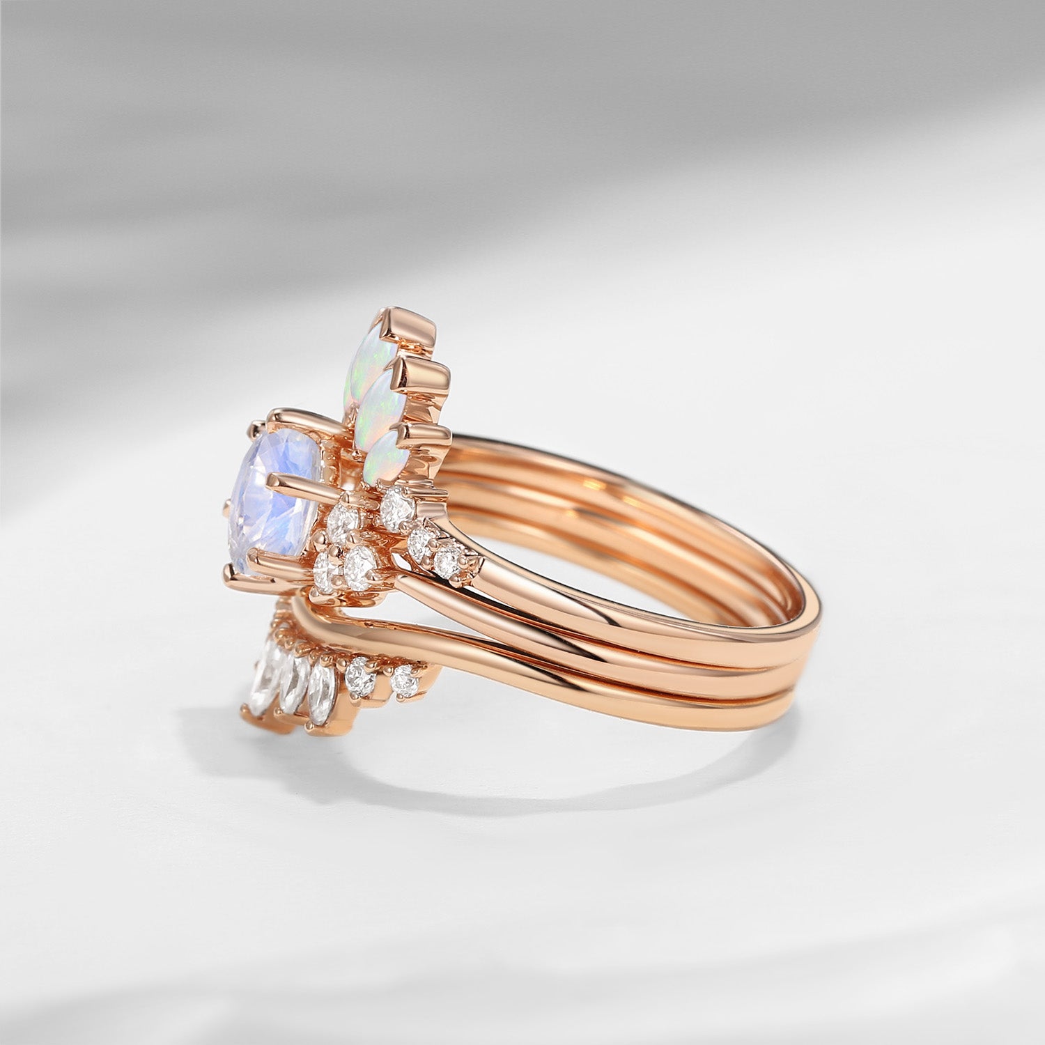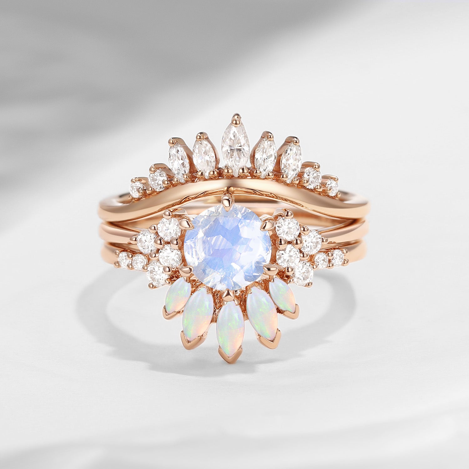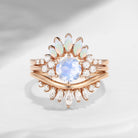 Moonstone Engagement Ring Set Rose Gold Bridal Set Marquise Opal Stacking Wedding Band Women Anniversary Unique Rings 3pcs