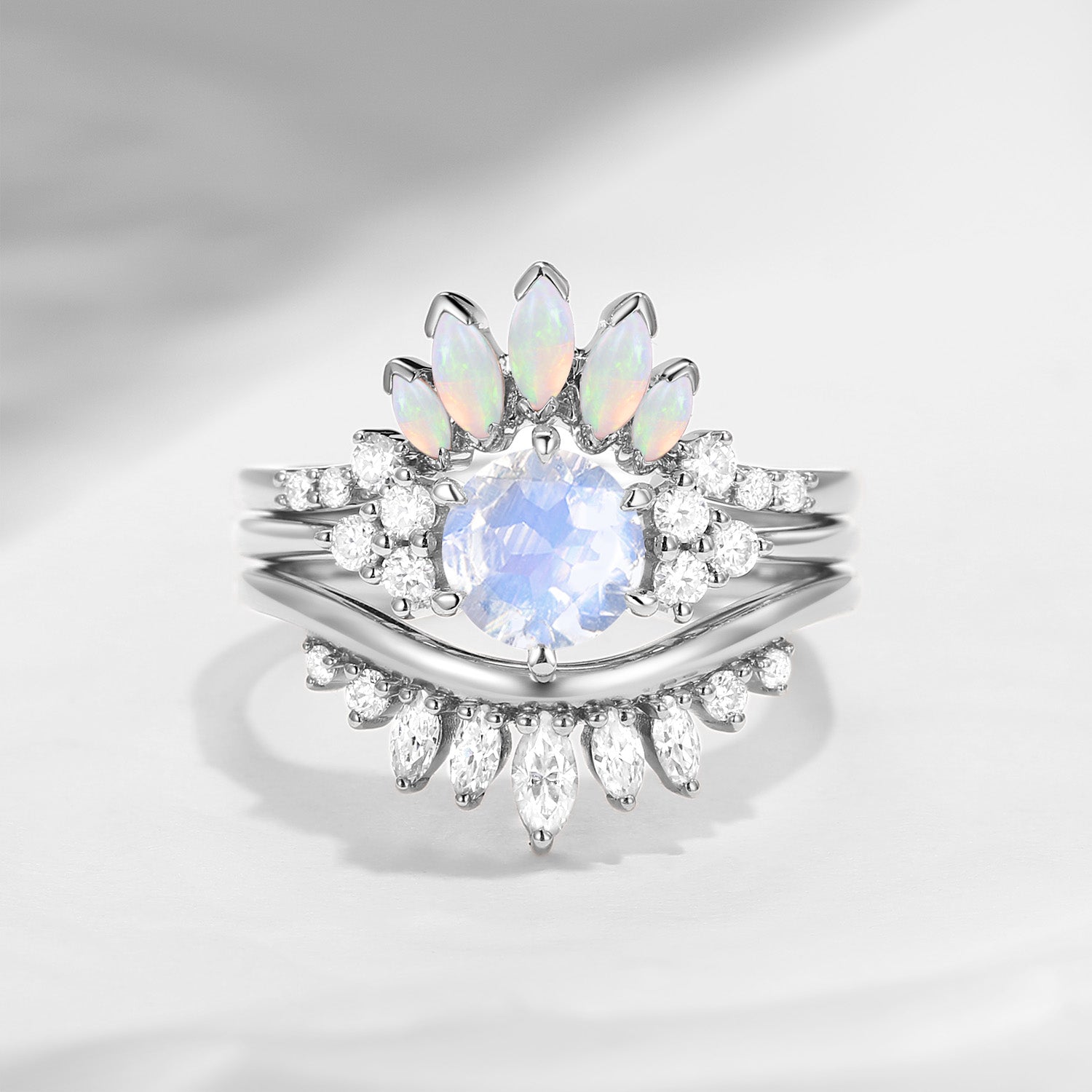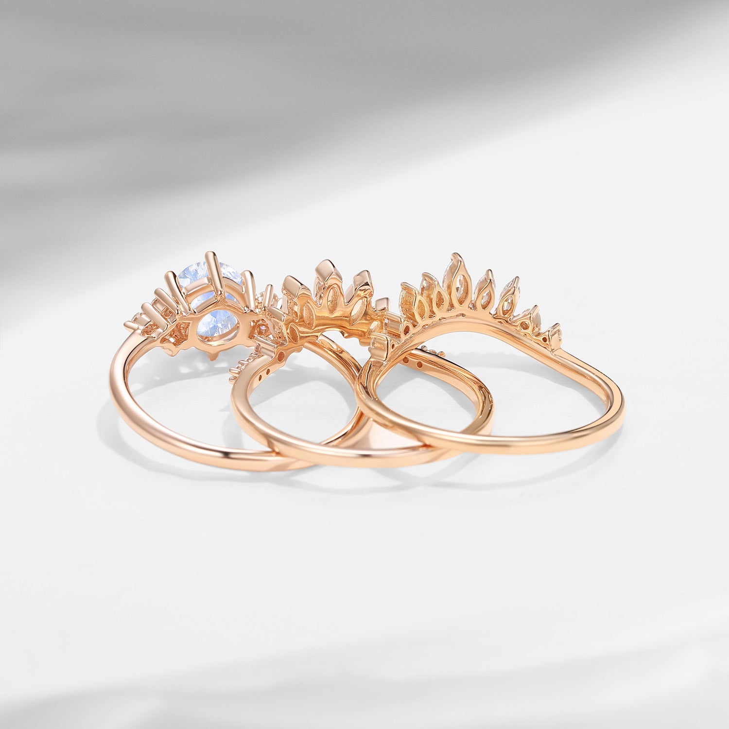 Bette‘s Eyes | Unique Round Cut Moonstone Ring Set 3pcs