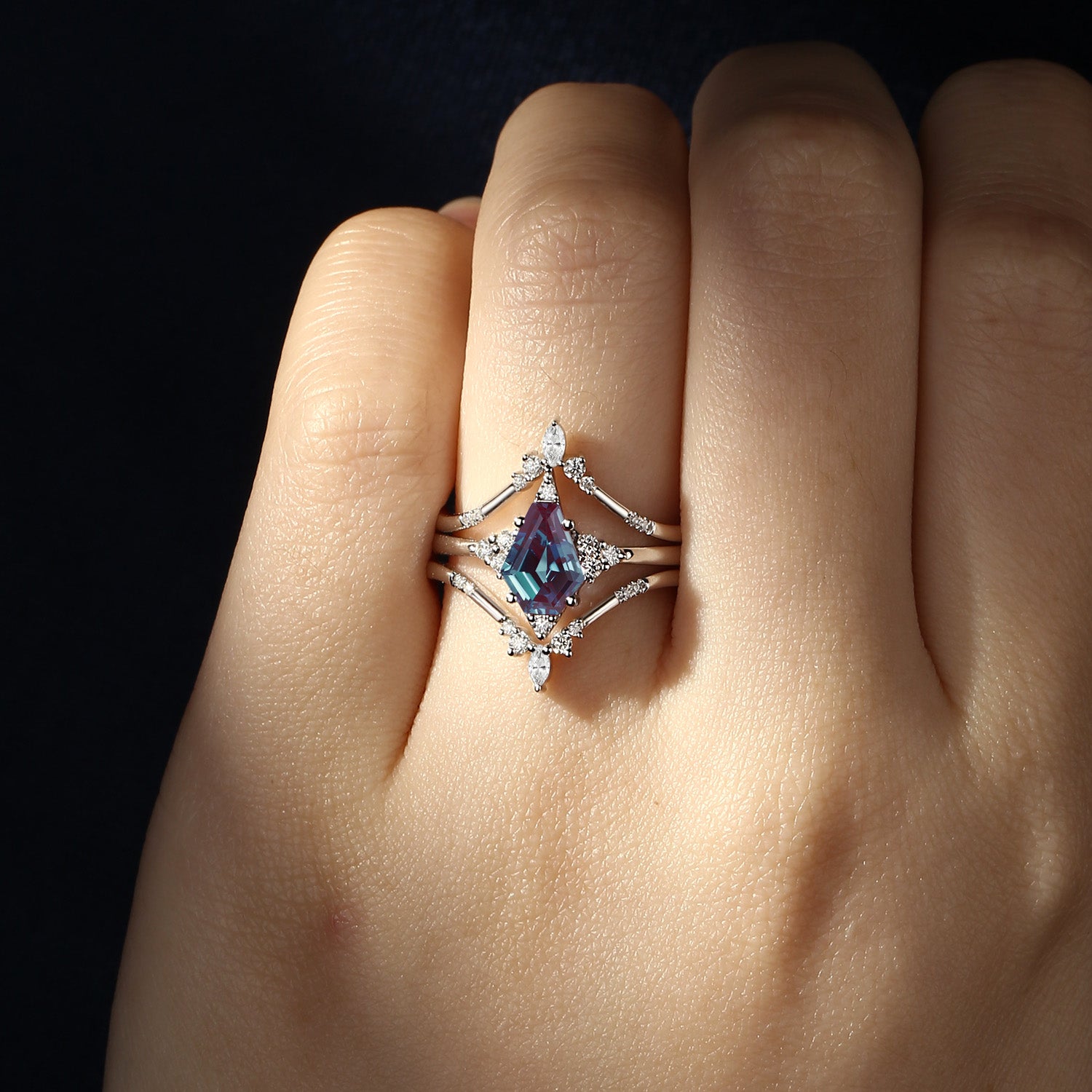 Coffin Cut Lab Alexandrite Star Bridal Set 3pcs