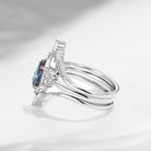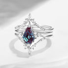 Alexandrite Engagement Ring White Gold coffin cut bridal set 3pcs Cluster One of a kind Marquise wedding band  Unique changing color Ring
