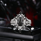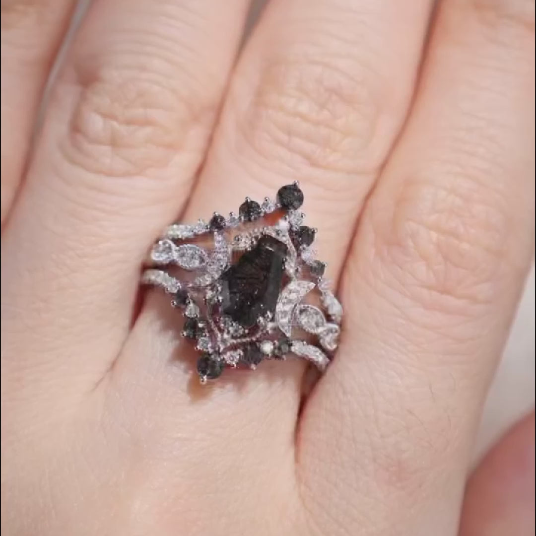 Crescent Moon | Coffin Cut Black Rutilated Quartz Ring 3pcs - Till Death Do Us Part Moon Engagement Ring Unique Engagement Ring