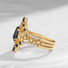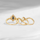 Crescent Moon | Coffin Cut Black Rutilated Quartz Ring 3pcs 18k - Till Death Do Us Part