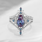 Crescent Moon | Coffin Cut Lab Alexandrite Engagement Ring Set Vintage Diamond Wedding Ring Art Deco Bridal Set Unique Ring Set 3pcs