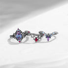 Crescent Moon | Coffin Cut Lab Alexandrite Black Gold Celtic Knot Ring Set 3pcs
