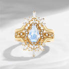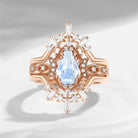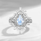 Crescent Moon | Coffin Cut Moonstone Sunburst Design Engagement Ring Set 3pcs