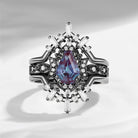 Crescent Moon | Coffin Lab Alexandrite Sunburst Design Black Gold Engagement Ring Set 3pcs
