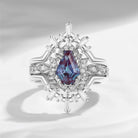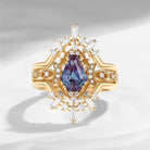 Crescent Moon | Coffin Lab Alexandrite Sunburst Design Engagement Ring Set 3pcs