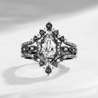 Coffin Lab Diamond Crescent Engagement Ring 3pcs Moon Bridal Ring Vintage Engagement Ring Art Deco Vintage 'Black Statement' Ring Set 3pcs