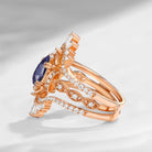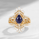 Crescent Moon | Maximalist Style Pear Shaped Blue Sandstone Engagement Ring Bridal Set 3pcs