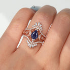 Crescent Moon | Maximalist Style Pear Shaped Blue Sandstone Engagement Ring 3pcs
