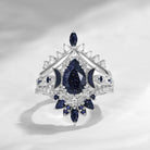 Crescent Moon | Pear Cut Blue Sandstone 'Ultra Galaxy' Engagement Ring Set 3pcs