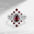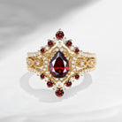 Crescent Moon Ring 18k Pear Cut Garnet Ring Set 3pcs Pear Shaped Halo Ring