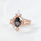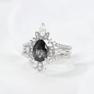 Crescent moon | Vintage Inspired Pear Cut Salt & Pepper Diamond Engagement Ring Set 3pcs