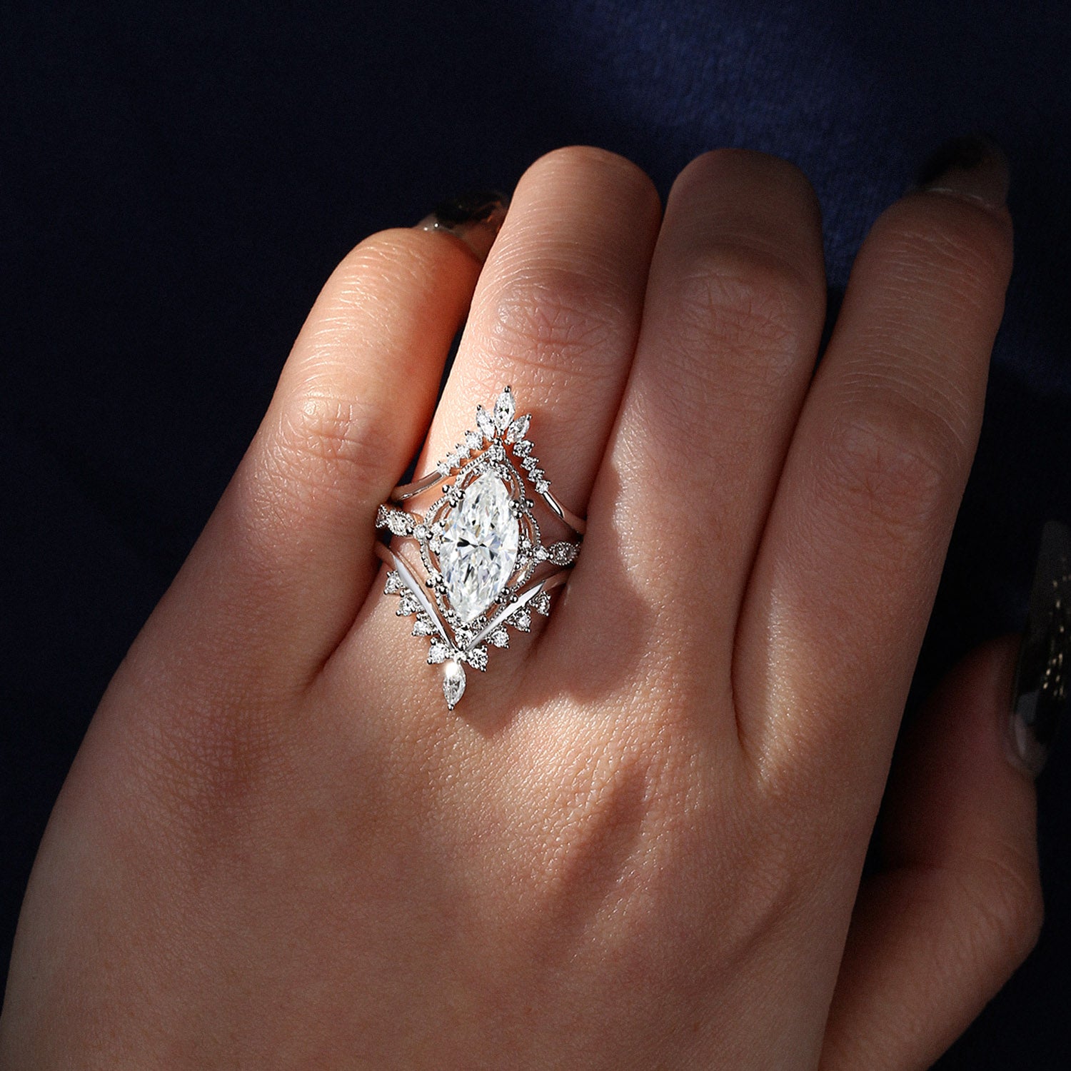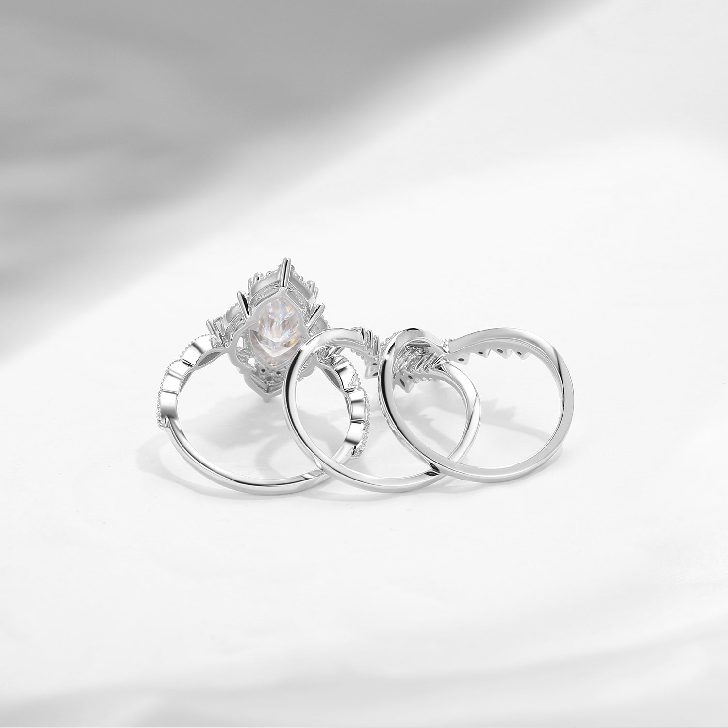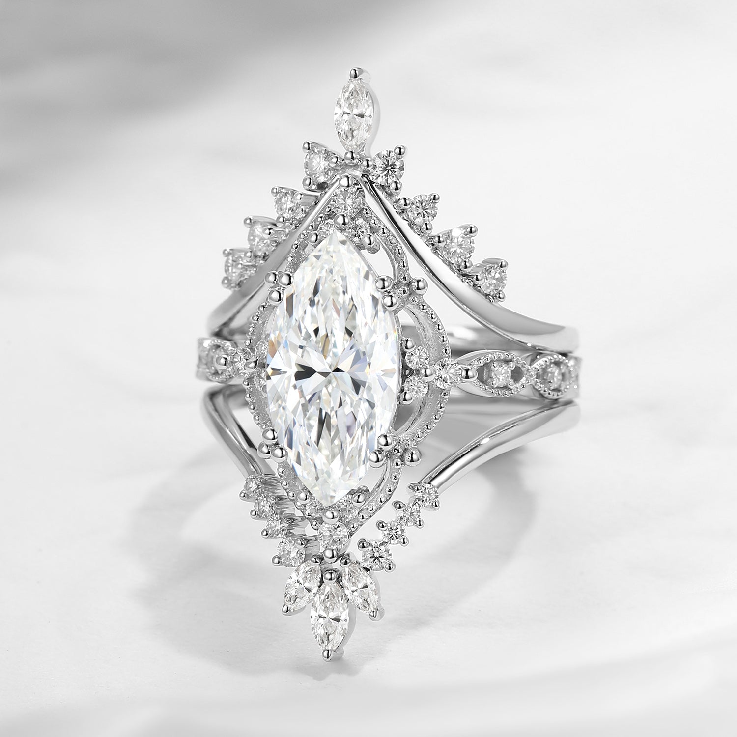 Elegant Vintage Style Marquise Moissanite Bridal Set 3pcs