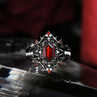 Gothic Inspired Hexagon Cut Garnet Vampire Shield Engagement Ring Set 3pcs