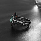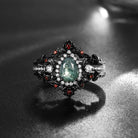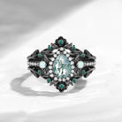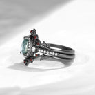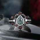 Nature Inspired Pear Cut Moss Agate Halo Engagement Ring Set 3pcs