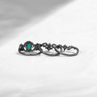 Non-Traditional Coffin Cut Lab Emerald Bat Wing Inspired Ring Black Gold Ring 3pcs