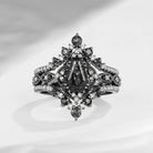 Engagement Ring Coffin Cut Black Rutilated Quartz Ring Beaded Engagement Ring Unique Engagement Ring