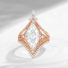 Vintage Inspired Marquise Cut Moissanite Engagement Ring Set 3pcs