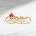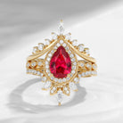 Vintage Inspired Pear Shaped Milgrain Lab Ruby Engagement Ring Set 3pcs - Diva