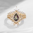 Pear Shaped Mystic Topaz Engagement Ring Set Milgrain Cluster Ring Vintage Style Unique Bridal Anniversary
