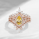 Vintage Inspired Pear Shaped Milgrain Yellow Lab Diamond Engagement Ring Set 3pcs - Diva
