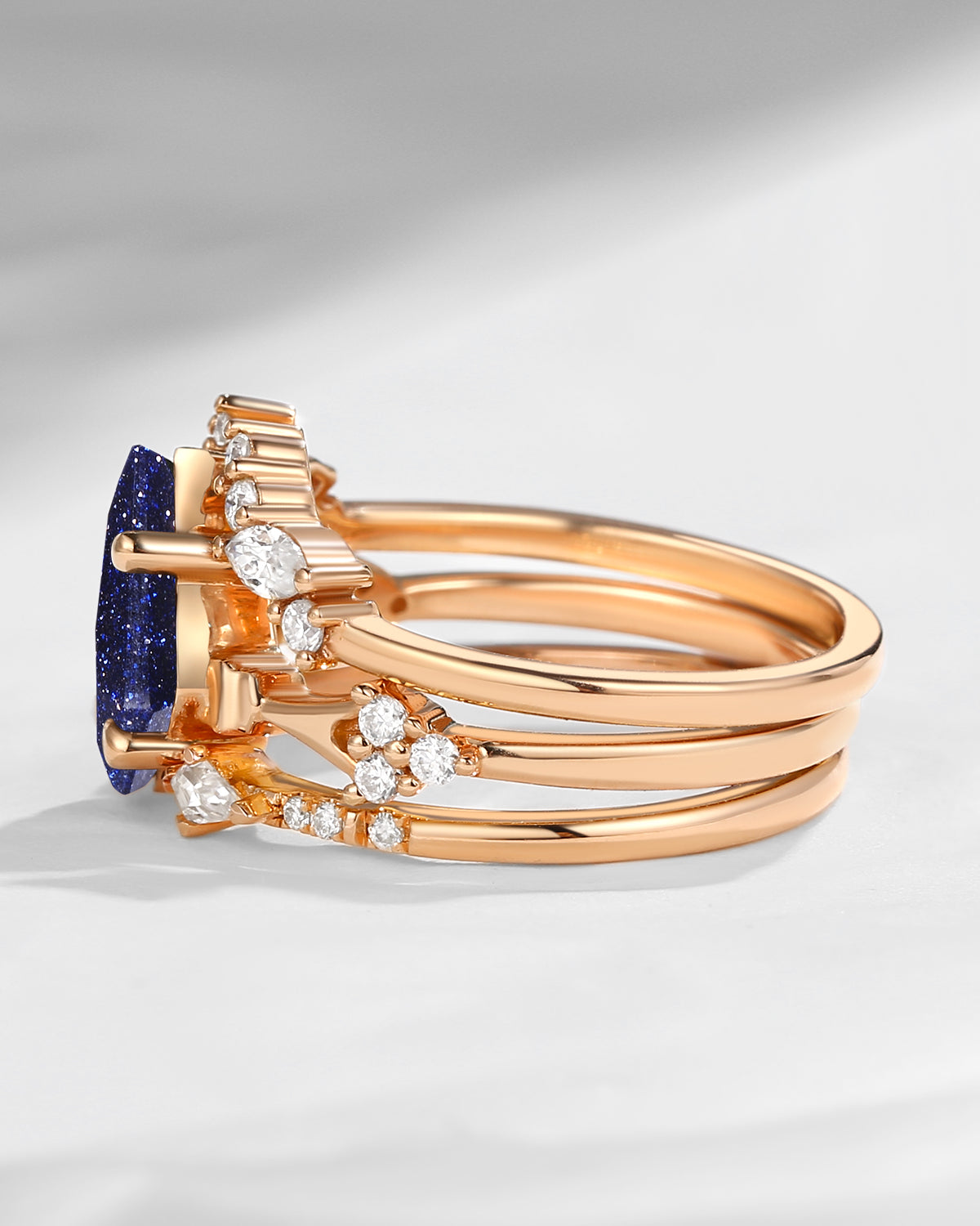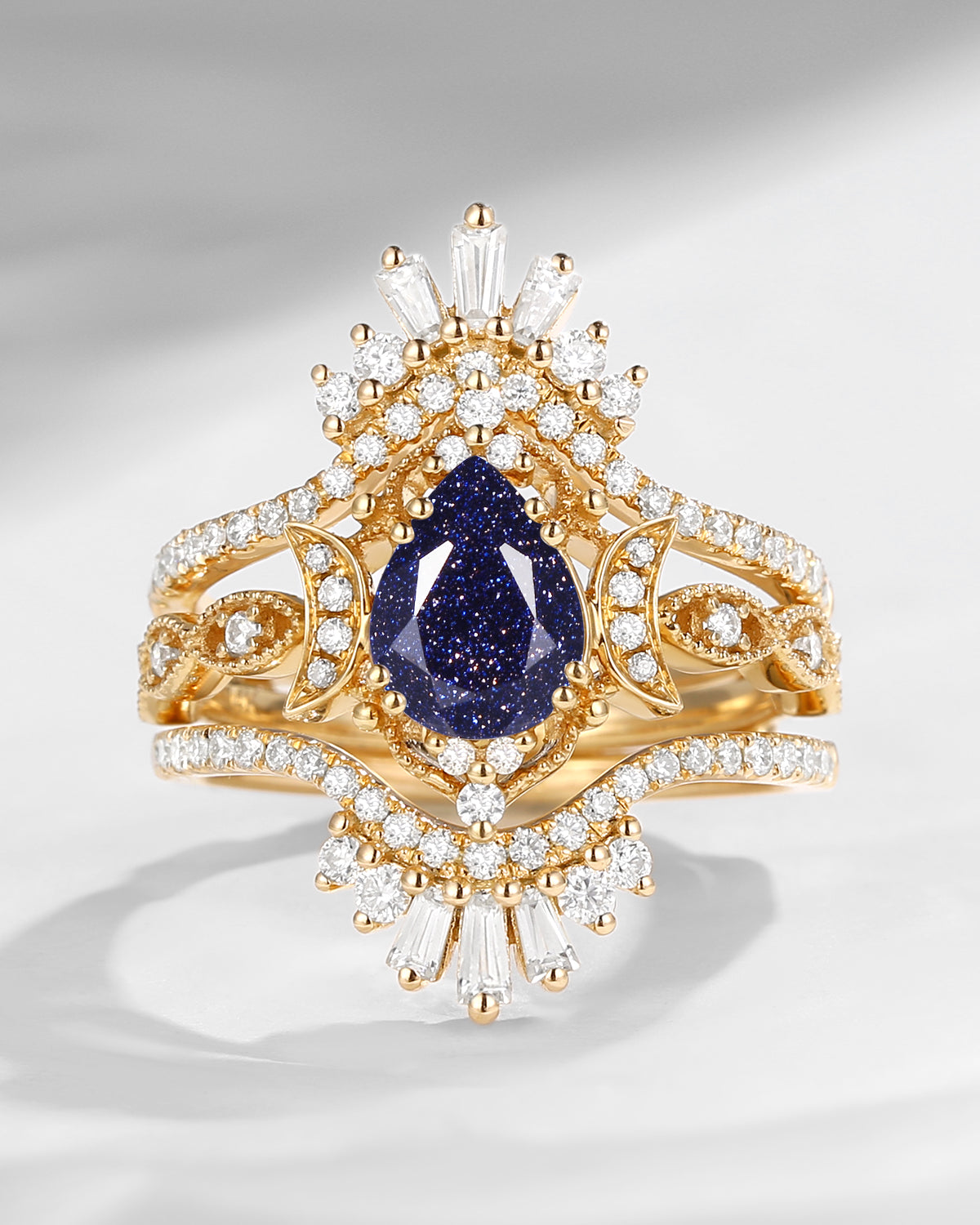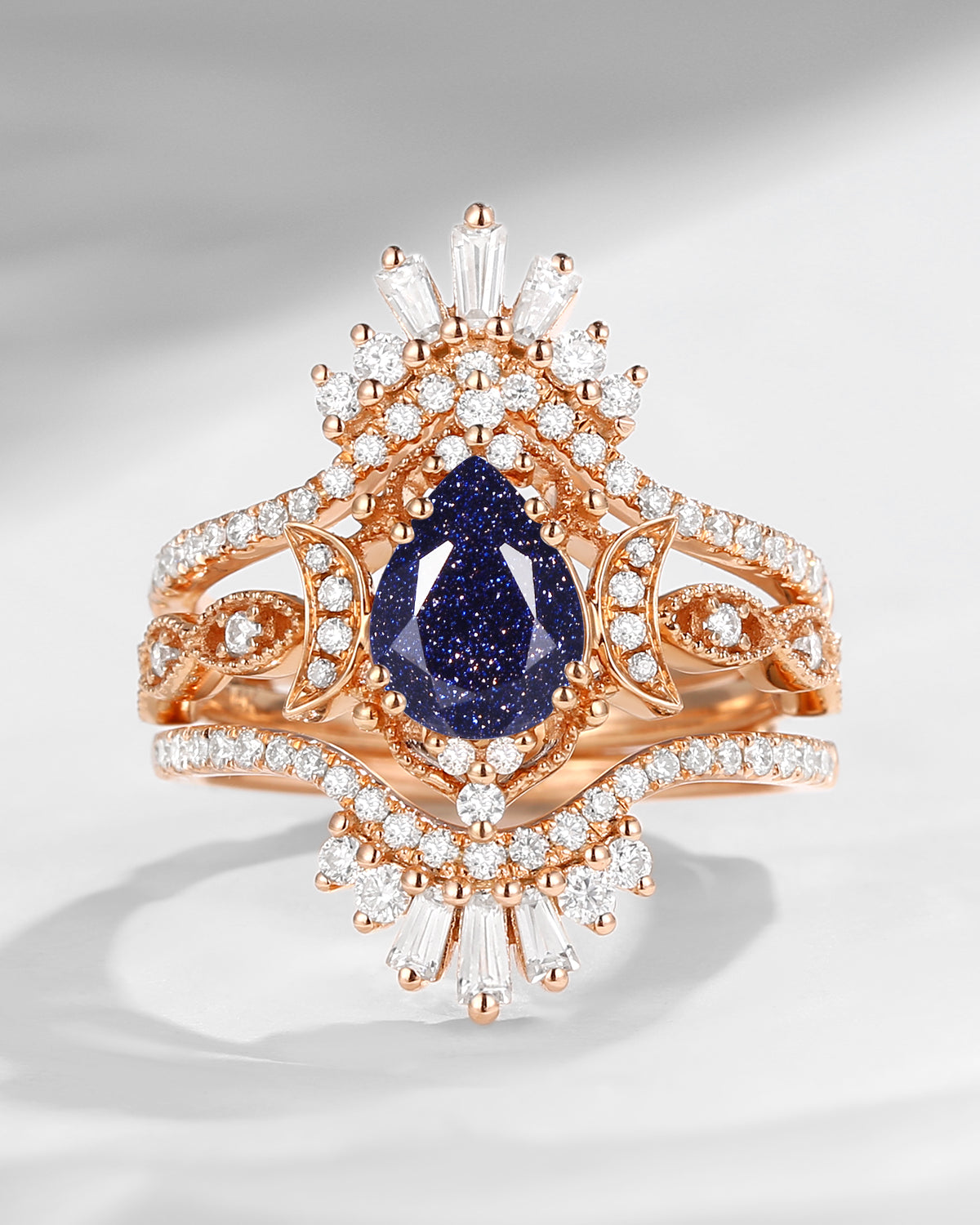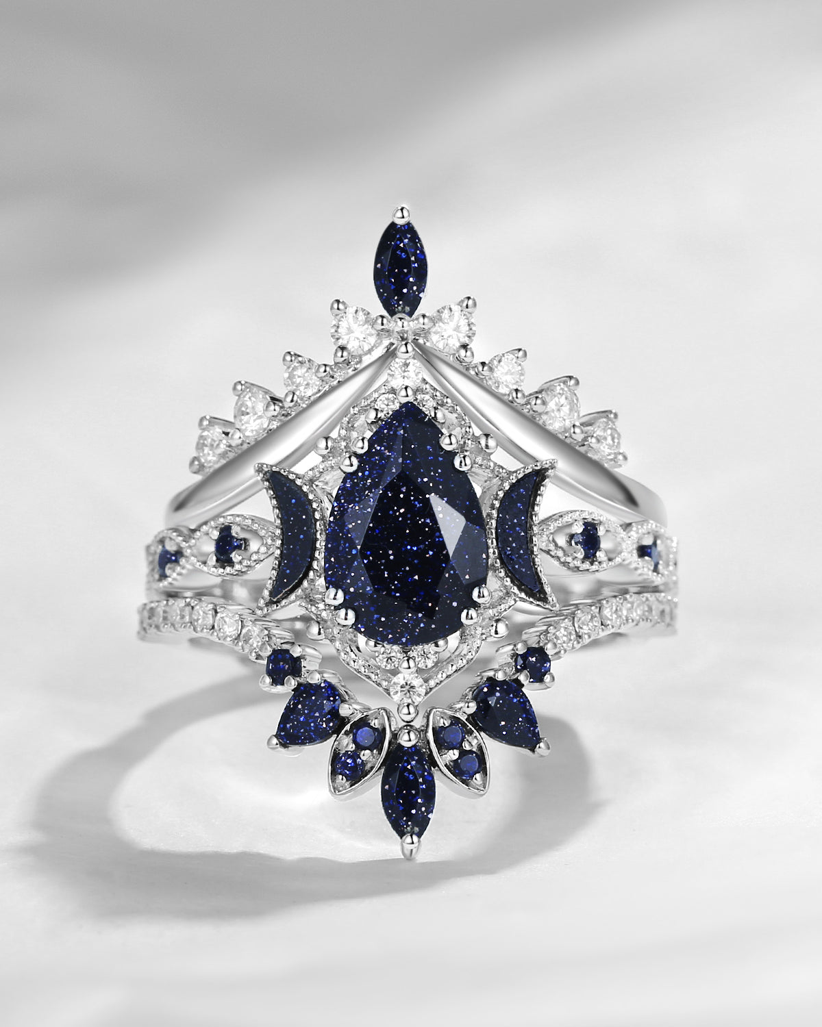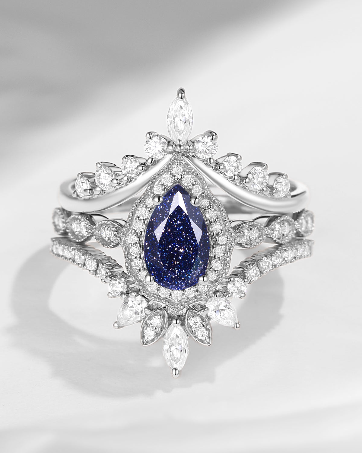 Crescent Moon | Pear Cut Blue Sandstone 'Ultra Galaxy' Engagement Ring Set 3pcs
