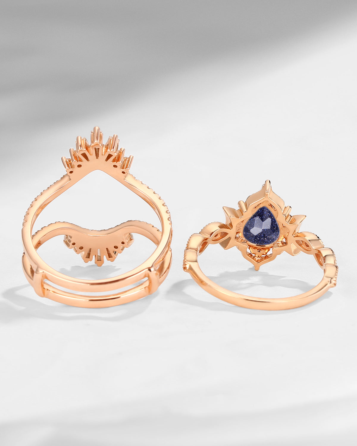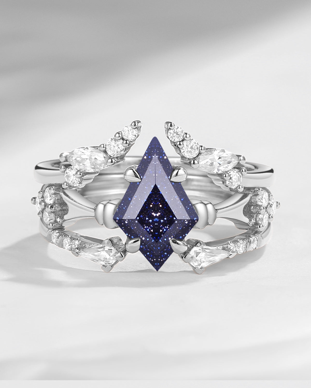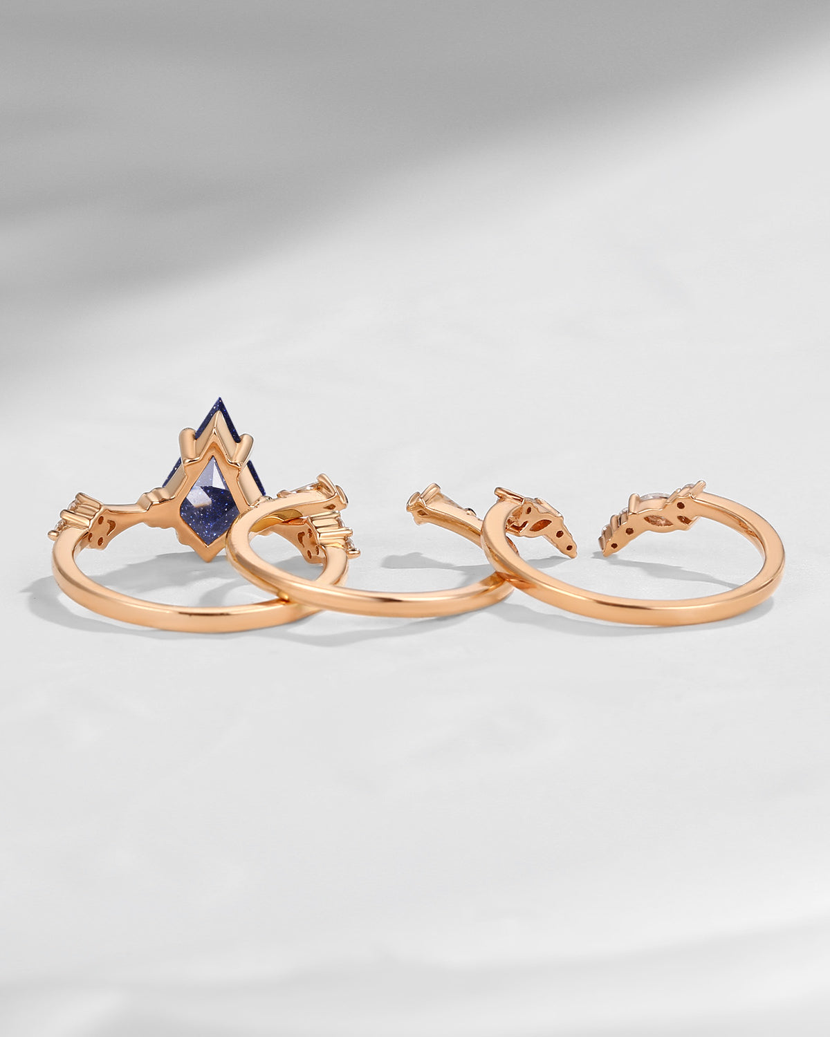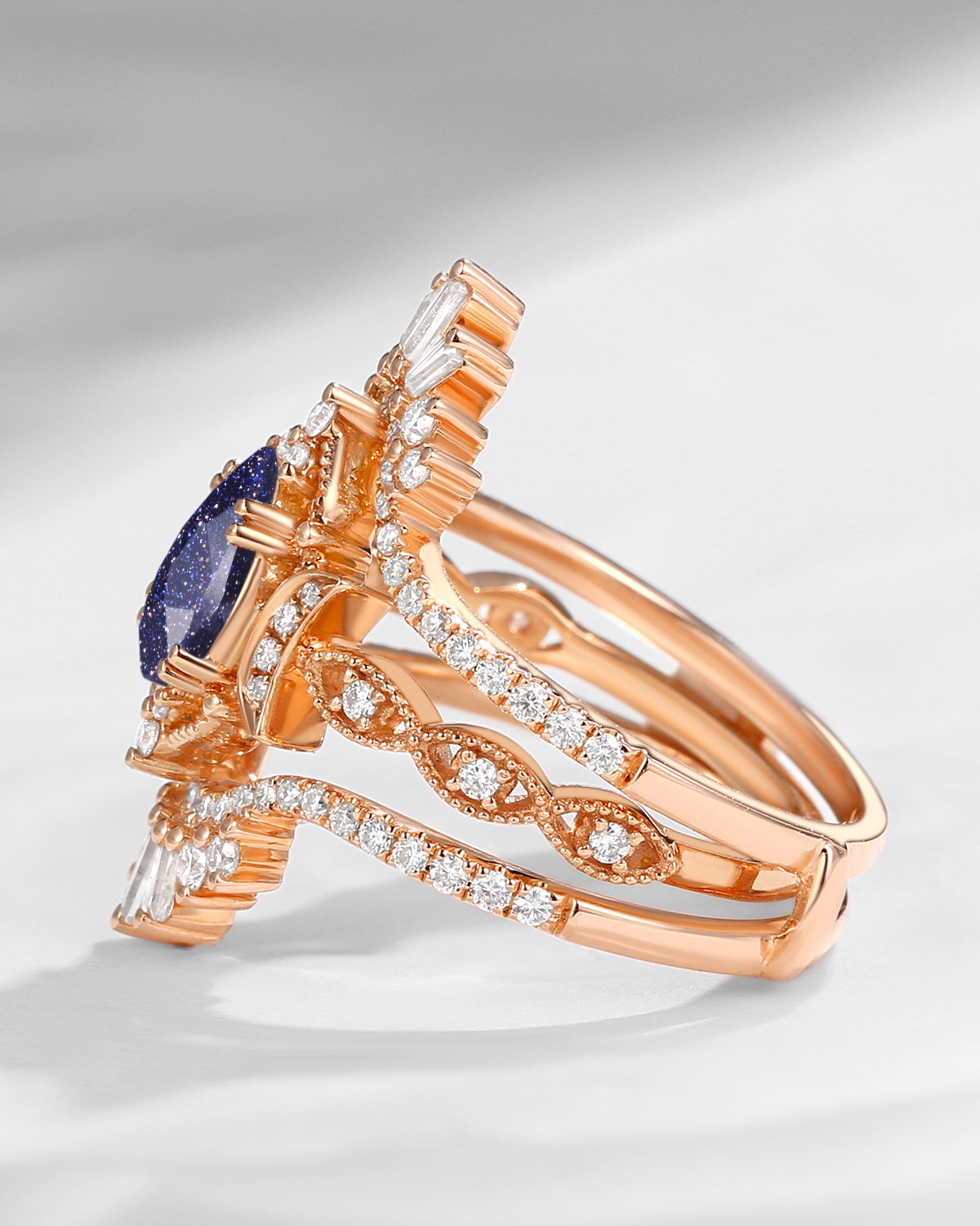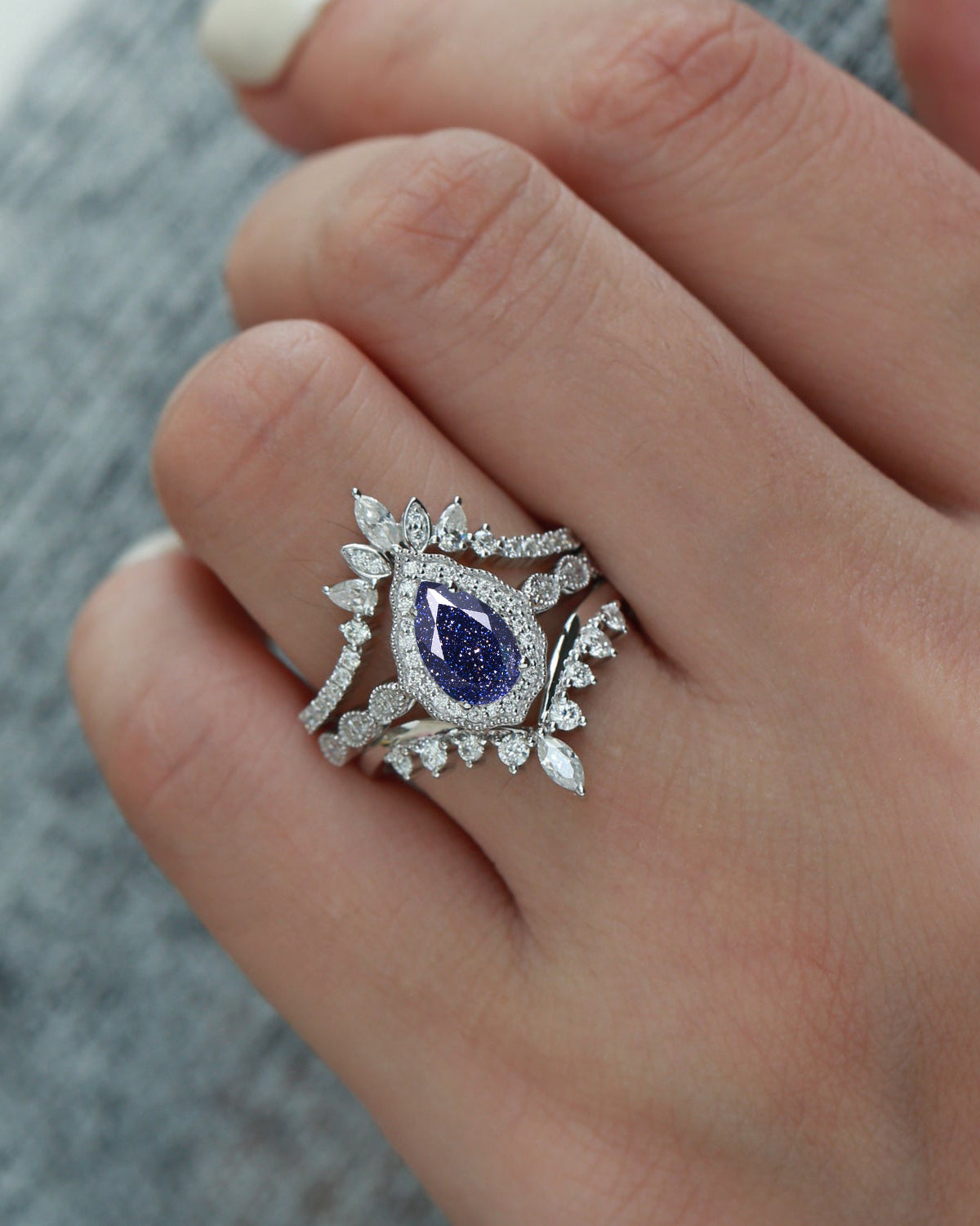 Crescent Moon | Pear Cut Blue Sandstone 'Ultra Galaxy' Engagement Ring Set 3pcs