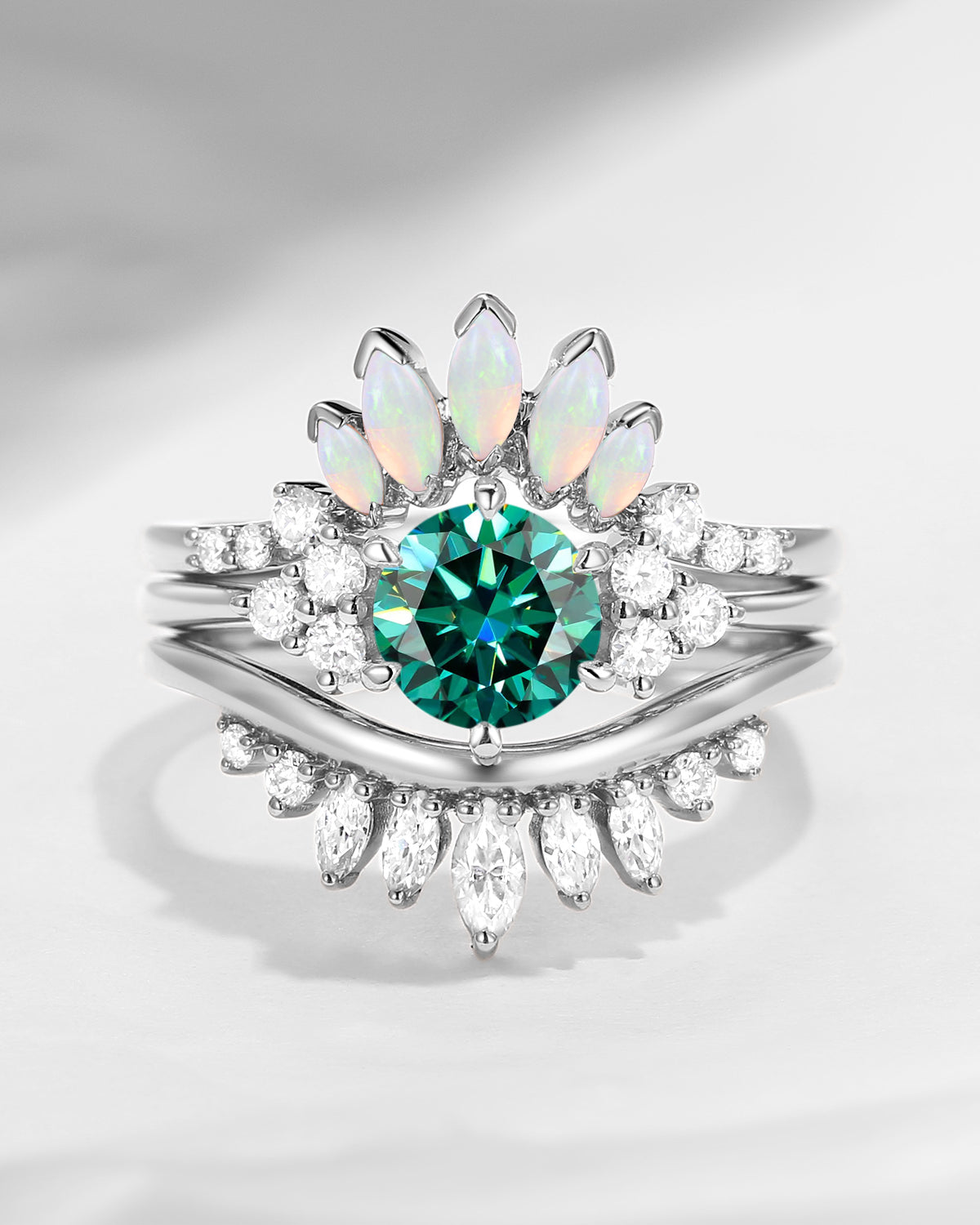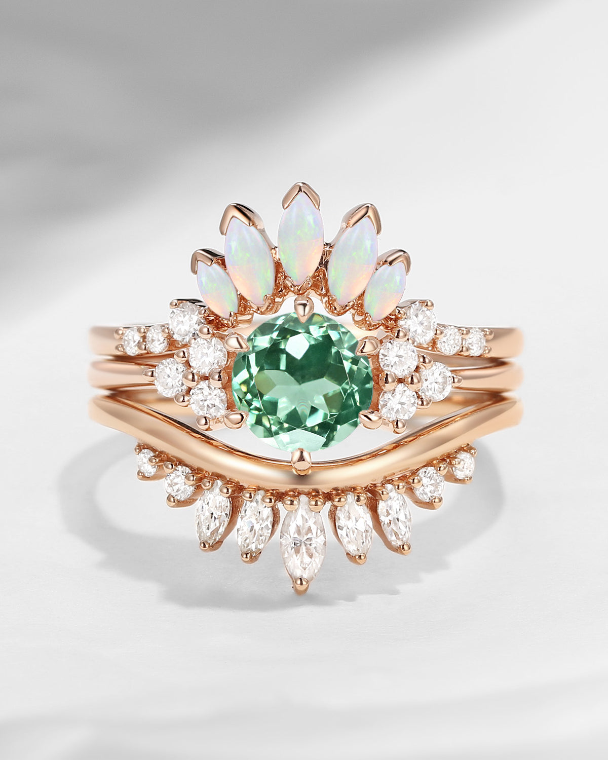 Bette‘s Eyes | Green Moissanite Engagement Ring Set 3pcs