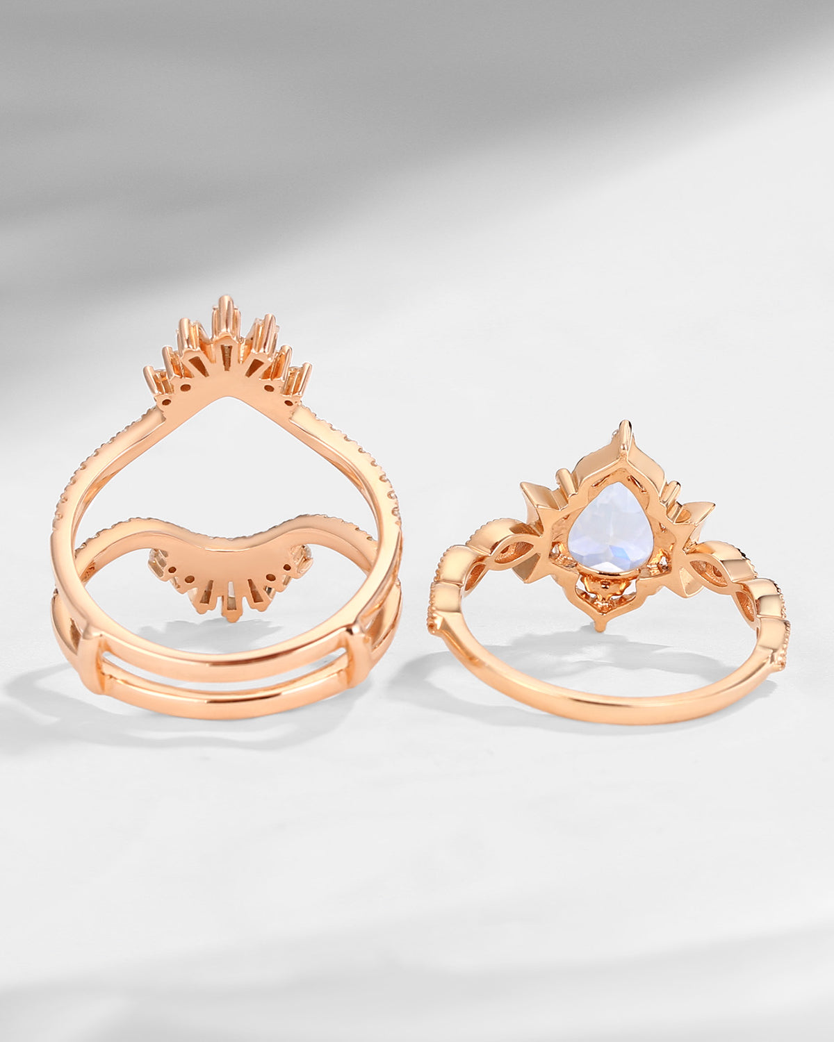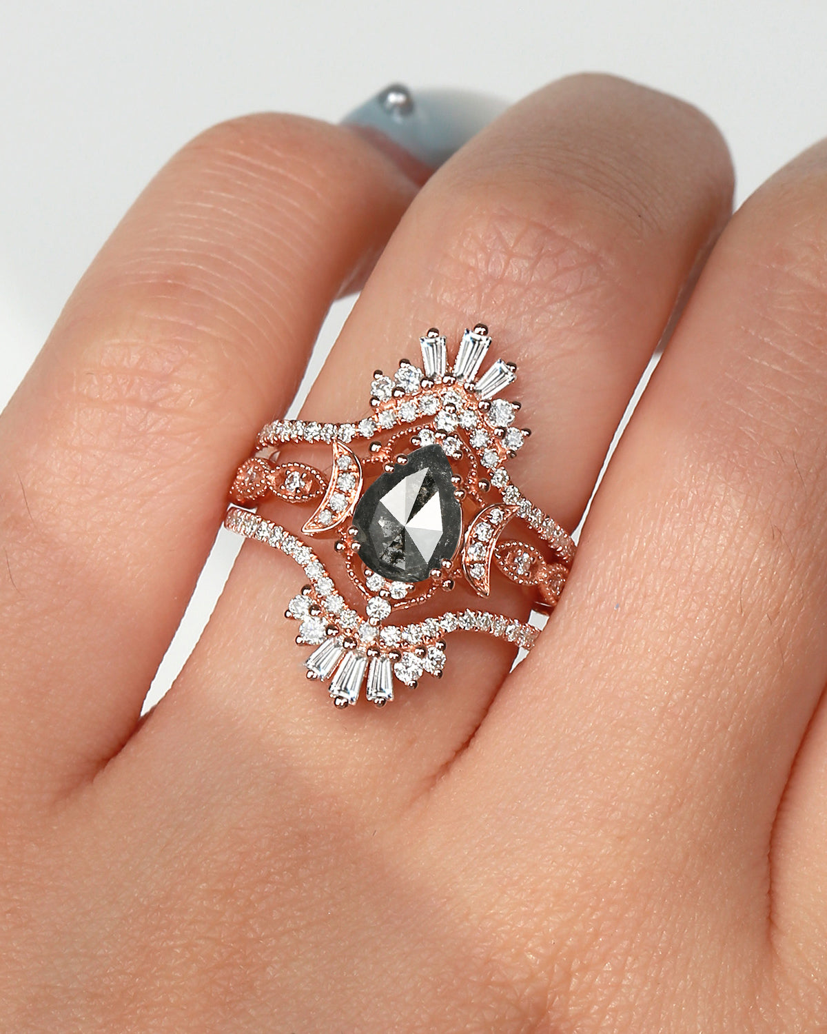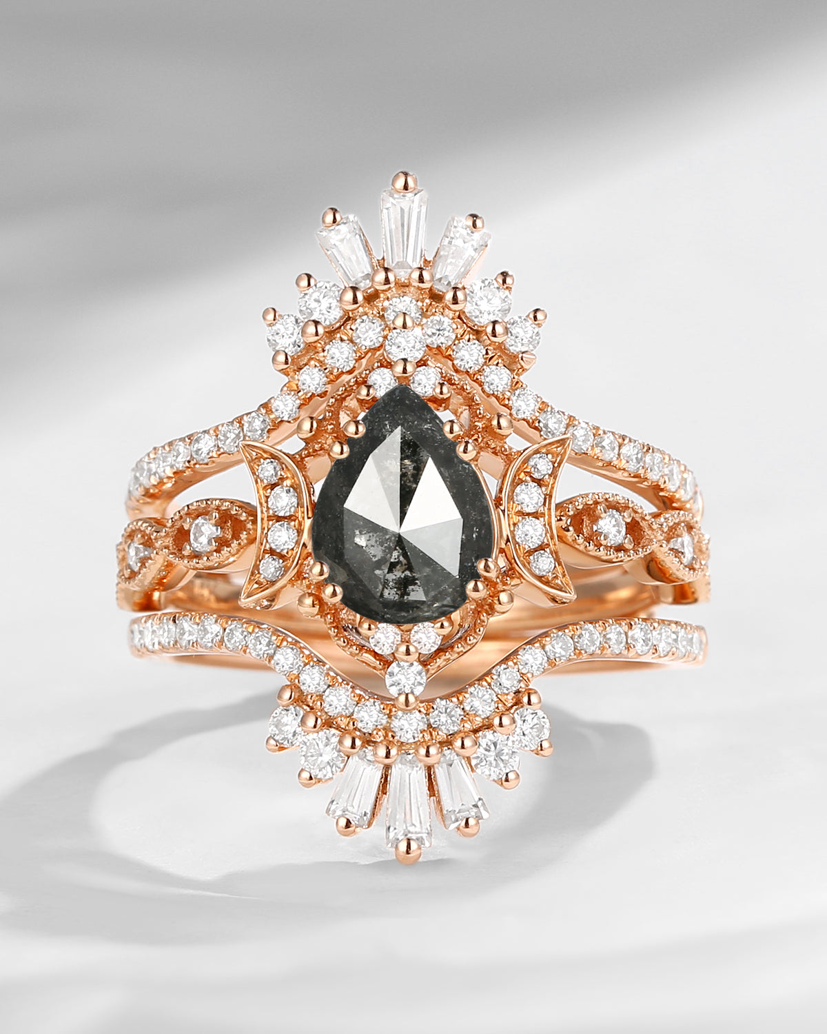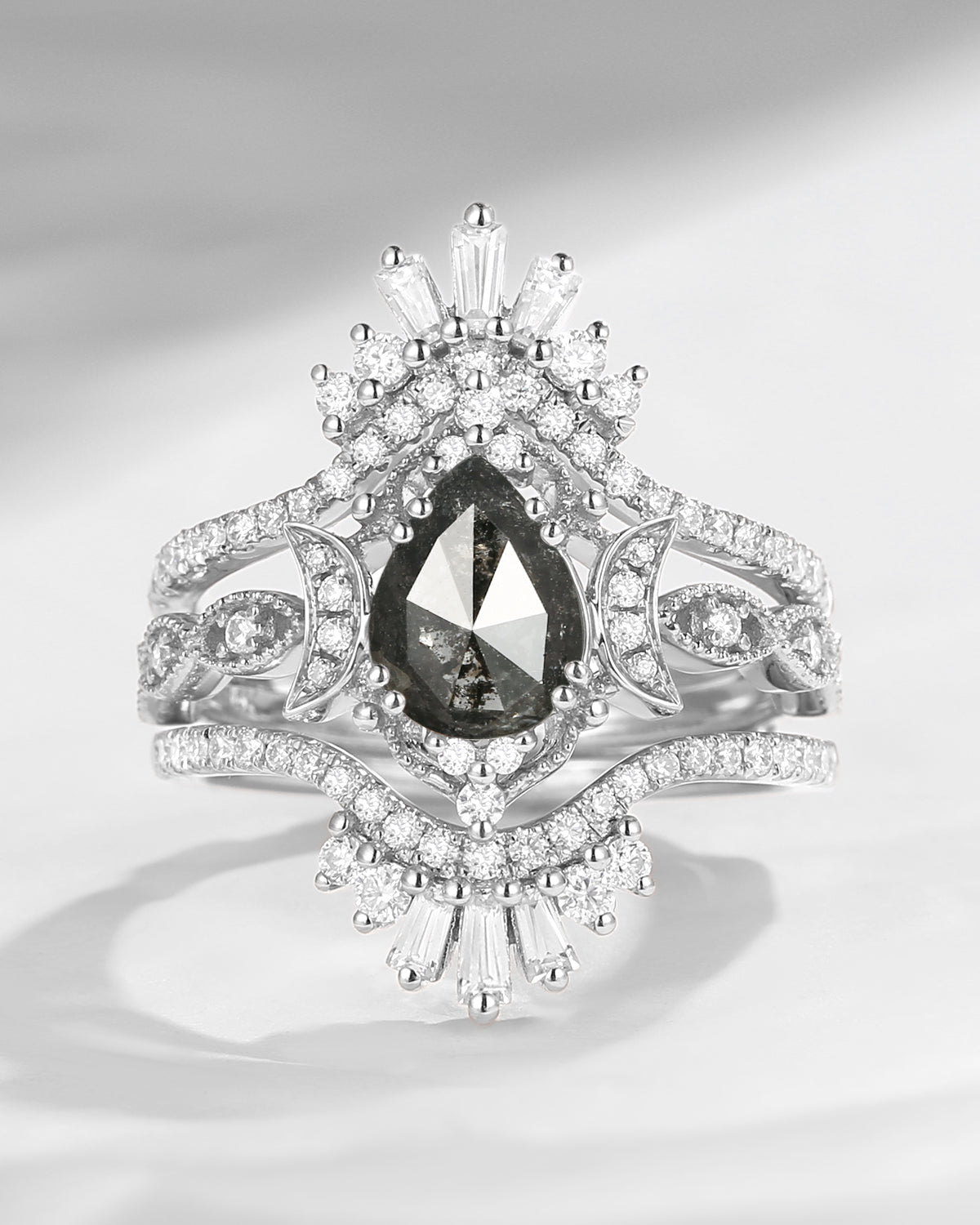 Crescent Moon | Maximalist Style Pear Shaped Moonstone Engagement Ring 3pcs